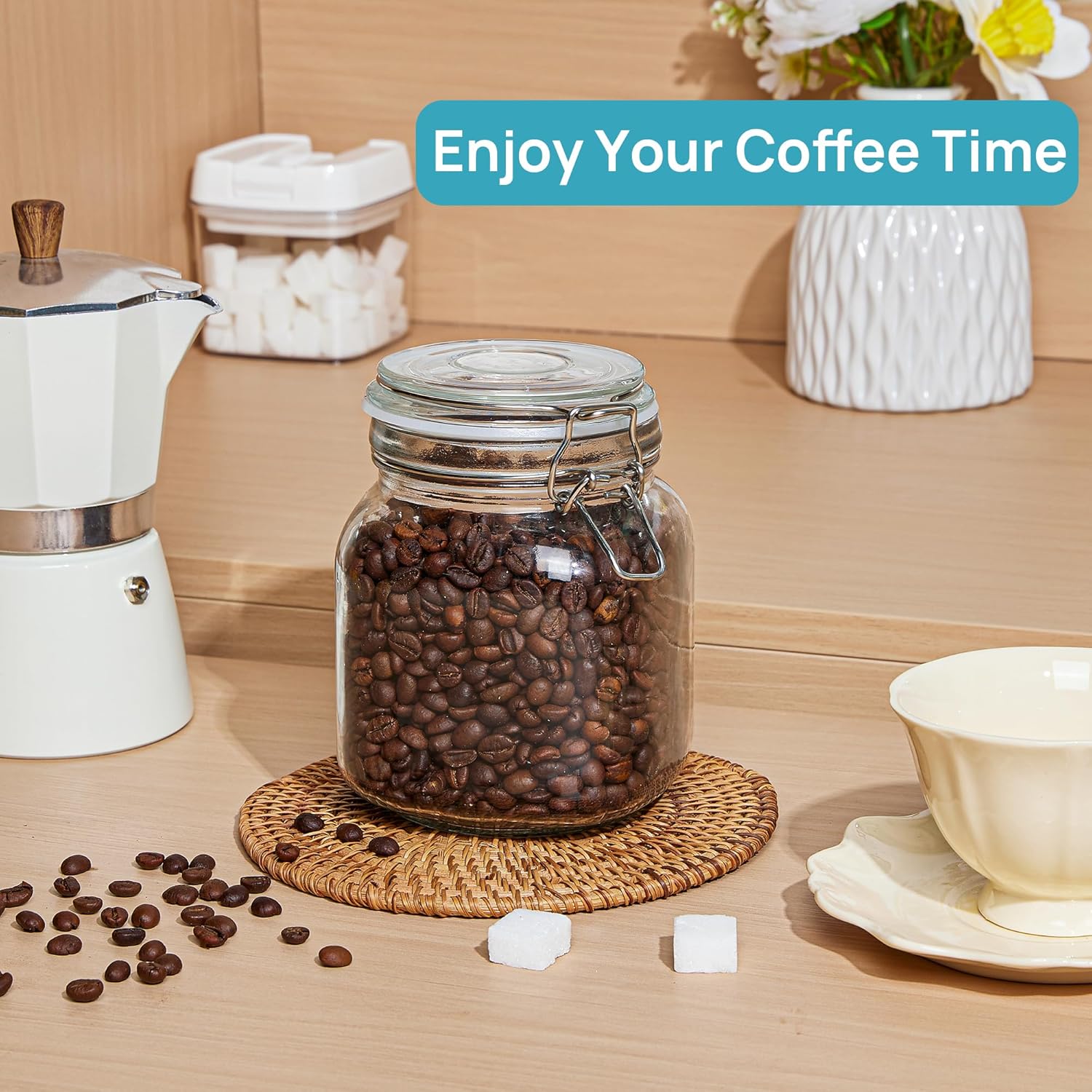 - Airtight and Keep Food Fresher ---- The Lids of these glass containers are airtight design, with rubber gasket clamp lids to ensure a leak-proof and airtight seal, keep your food dry and fresh for a long time. Convenient and attractive on the kitchen counter tops, they are also a great addition to your pantry organization.