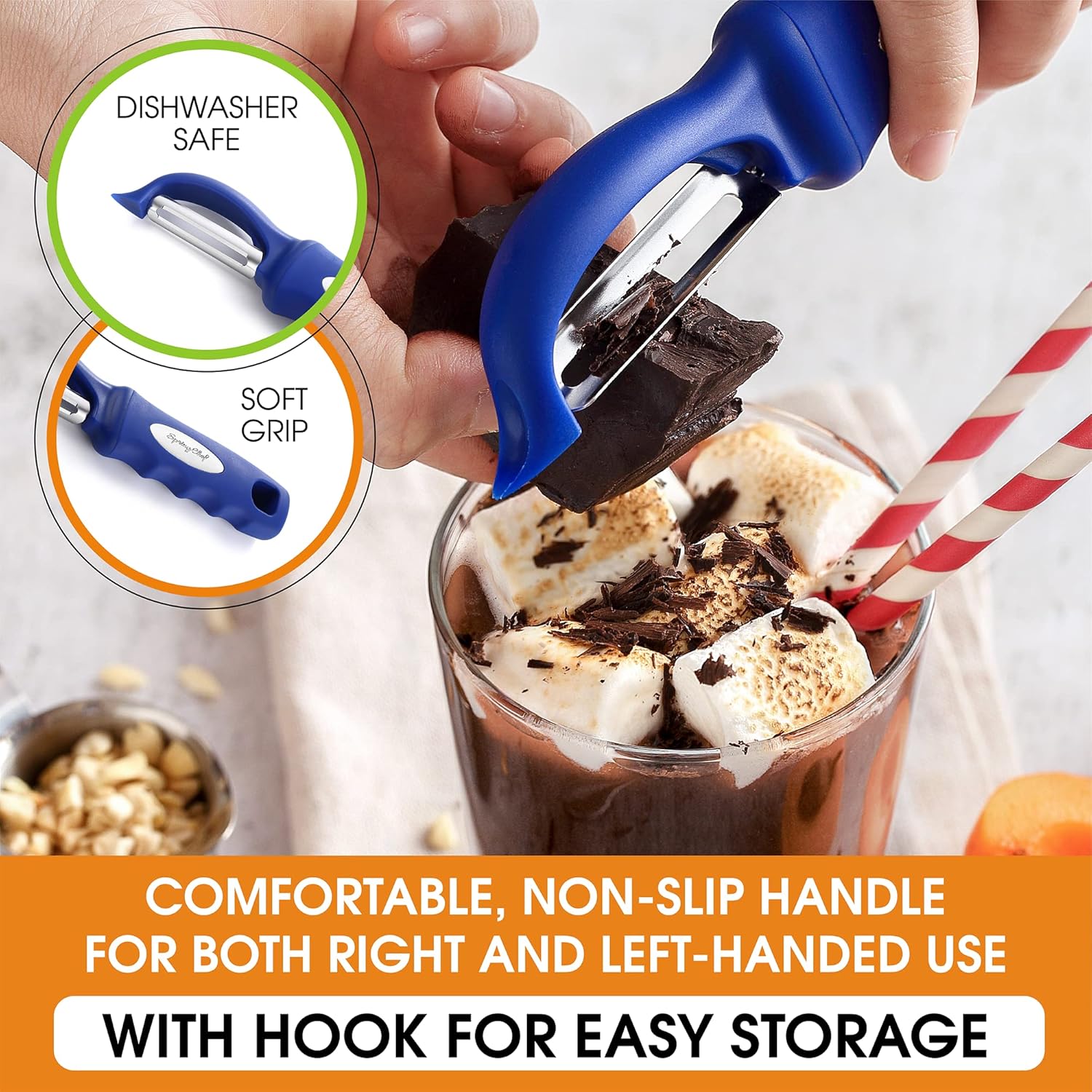 Spring Chef Stainless Steel Swivel Vegetable Peeler for Kitchen, Dishwasher Safe Potato Peelers with Comfortable Handle & Sharp Blades, Great for Apple, Carrot, Veggie, Fruit - Set of 2 - Sapphire