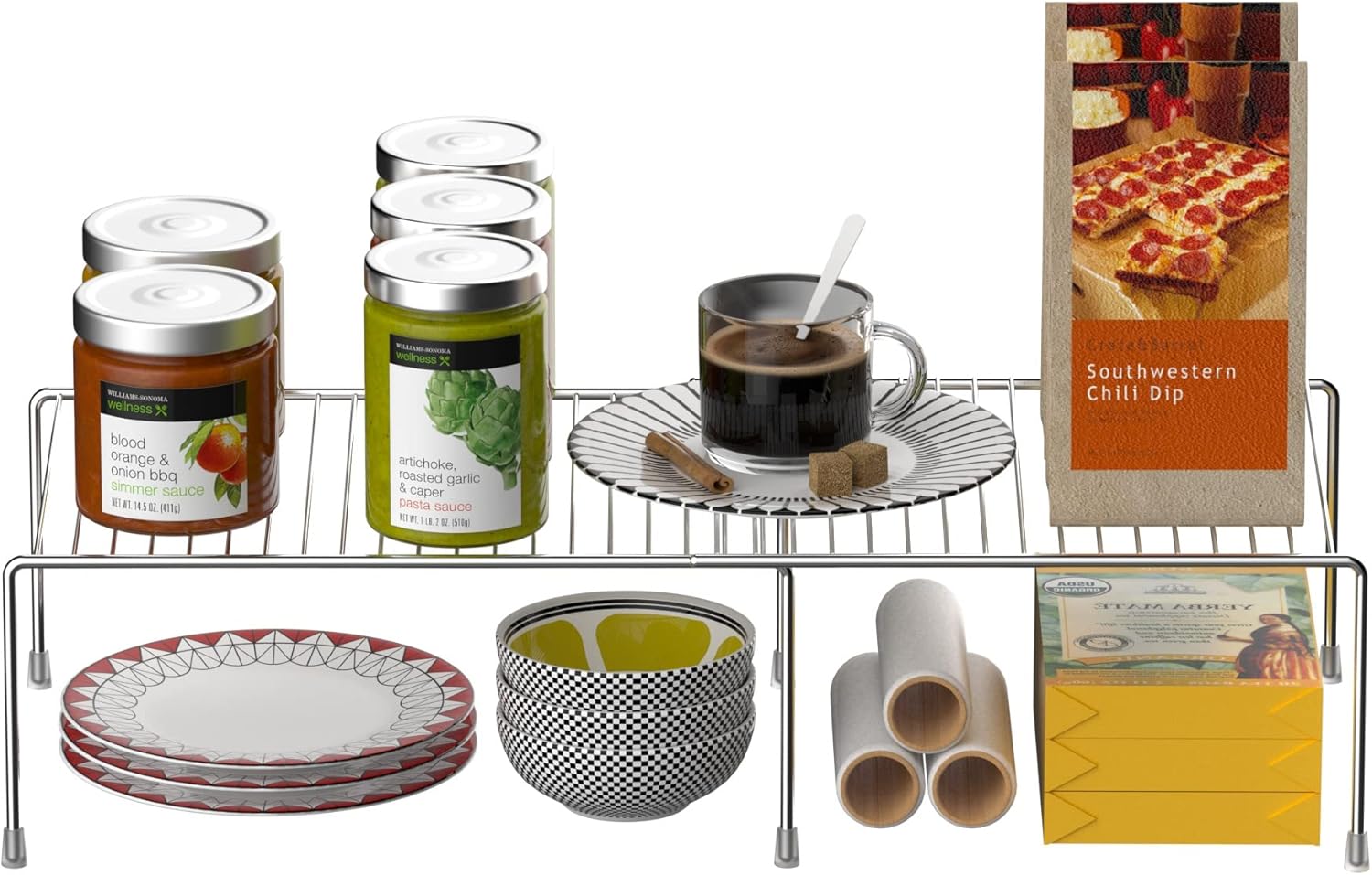 - FUNCTIONAL STORAGE:Perfect shelf to keep everything organized in cabinet, pantry, cupboard, closet, drawer or counter top in kitchen, bathroom, bedroom and under the sink. With the mesh design board, it can be a drying rack for dishes, bottles, plates.