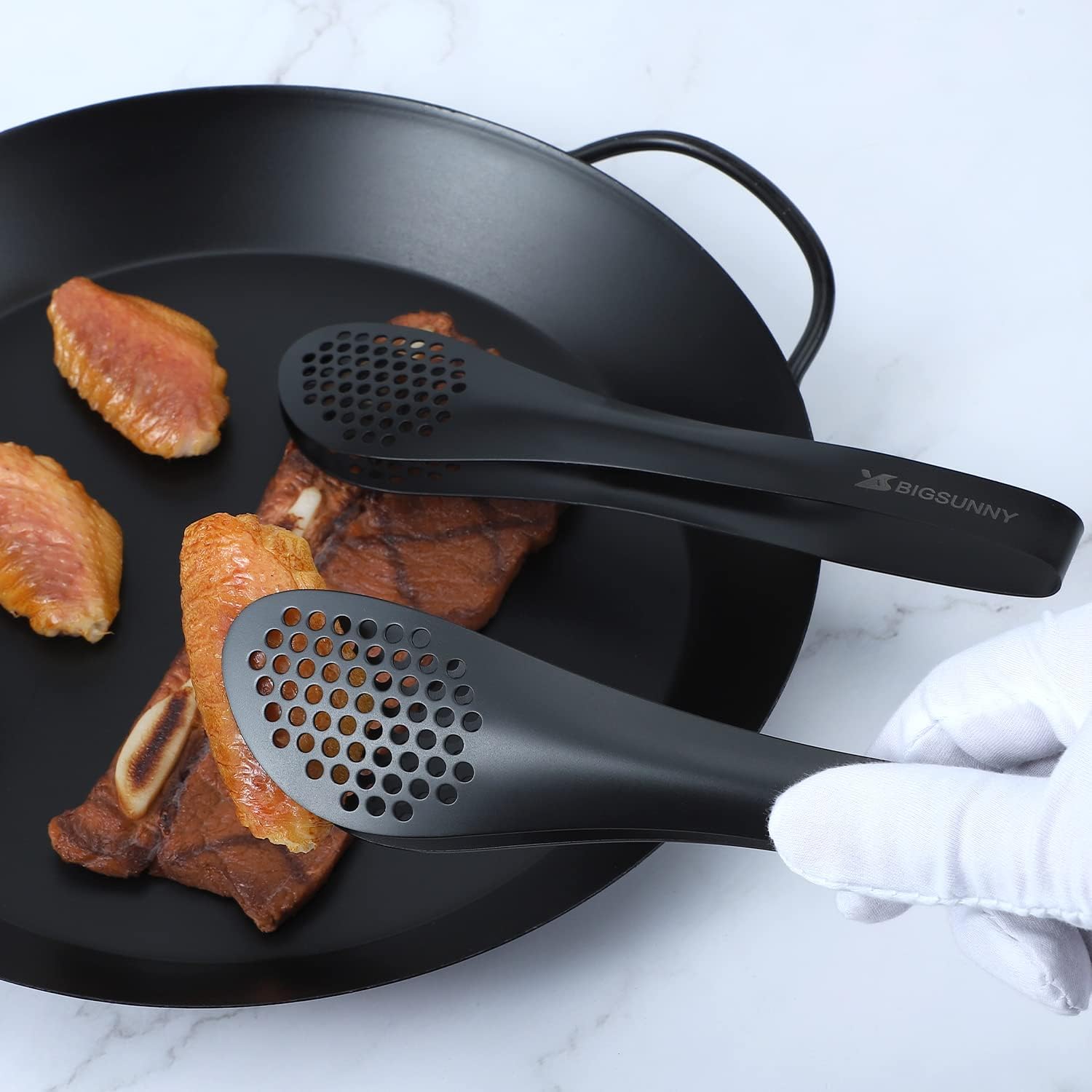 MSY BIGSUNNY Stainless Steel Buffet Tongs - Kitchen Food Tong for Cooking and Serving (Black - 9" Serving Tongs)