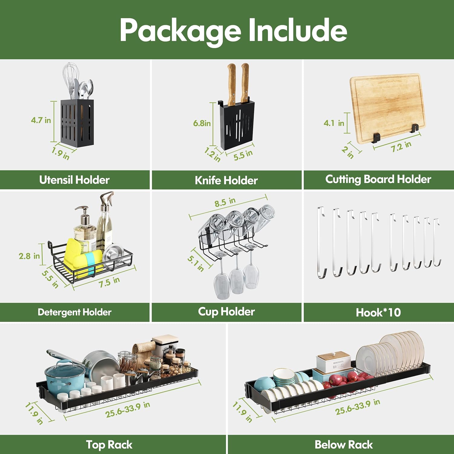 - ๐ Expandable Design for Custom Fit: Adjust the over sink dish drying rack width effortlessly to span most standard single or double sinks, adapting seamlessly to your kitchen layout. The dish drain modular design allows rearranging tiers and accessories to prioritize space for tall glasses, wide pans, or cleaning tools, maximizing vertical storage above the sink