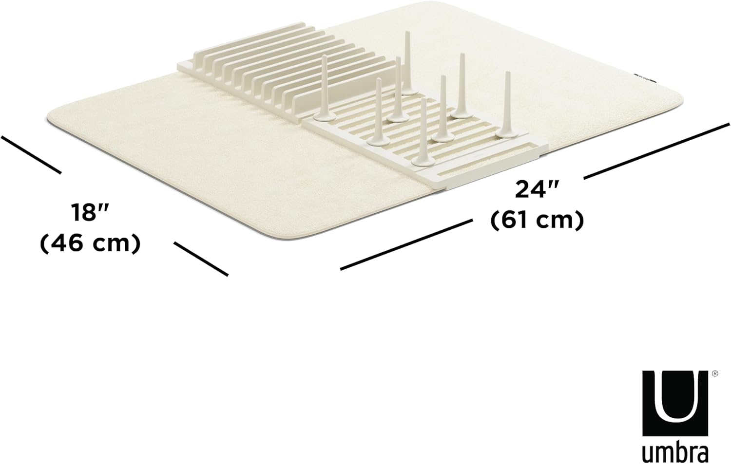 Umbra Udry Rack and Microfiber Dish Drying Mat-Space-Saving Lightweight Design Folds Up for Easy Storage, Standard, Linen