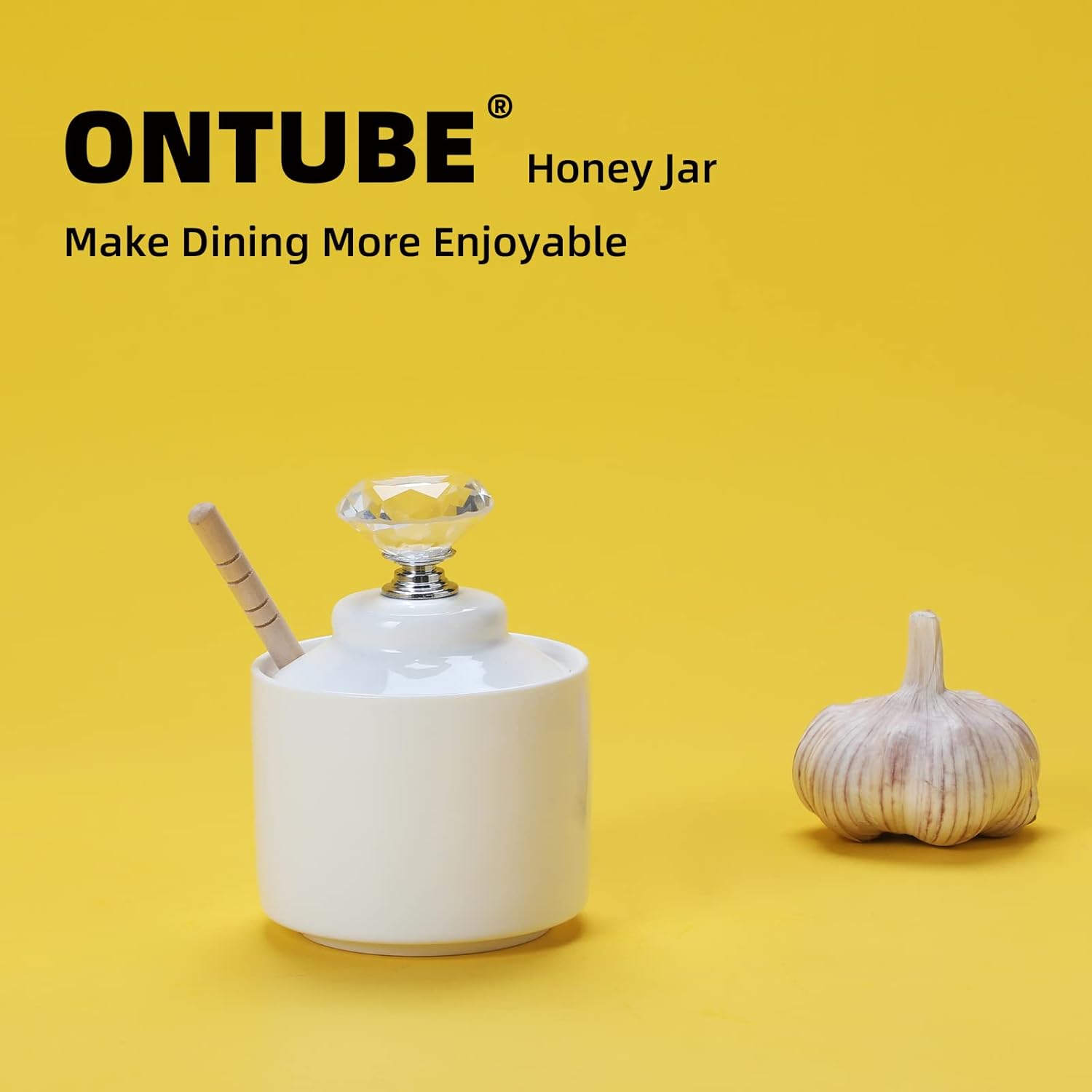 - HUMANIZED DESIGN: ONTUBE porcelain honey jar's size is 8 oz,3.48"Lx3.48"Wx4.75"H,suitable for daily use