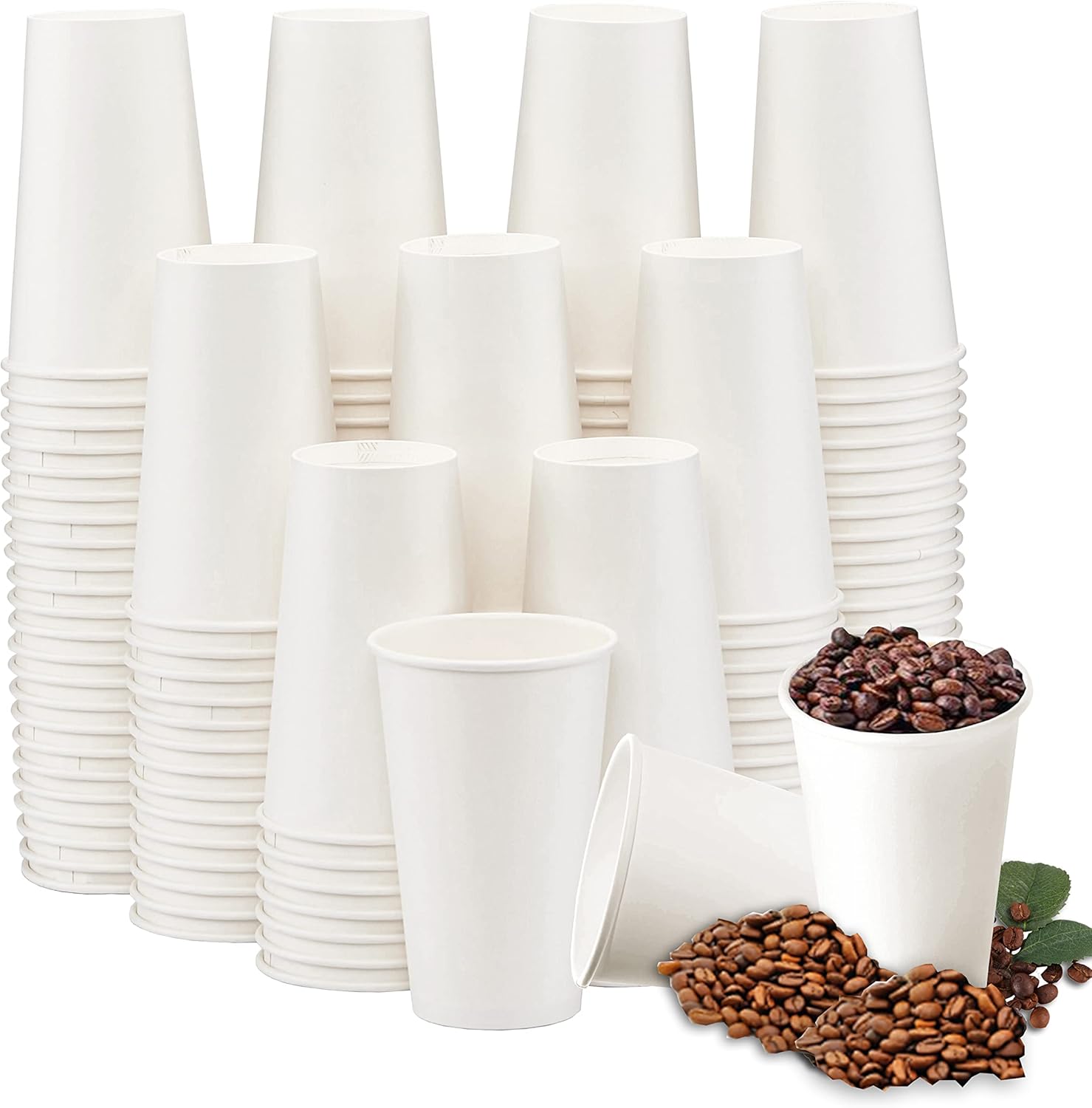 Lamosi 16 oz Disposable Coffee Cups, 180 Pack 16 oz White Paper Cups, Hot/Cold Beverage Drinking Cups for Water Juice or Tea, Office Party Home Travel
