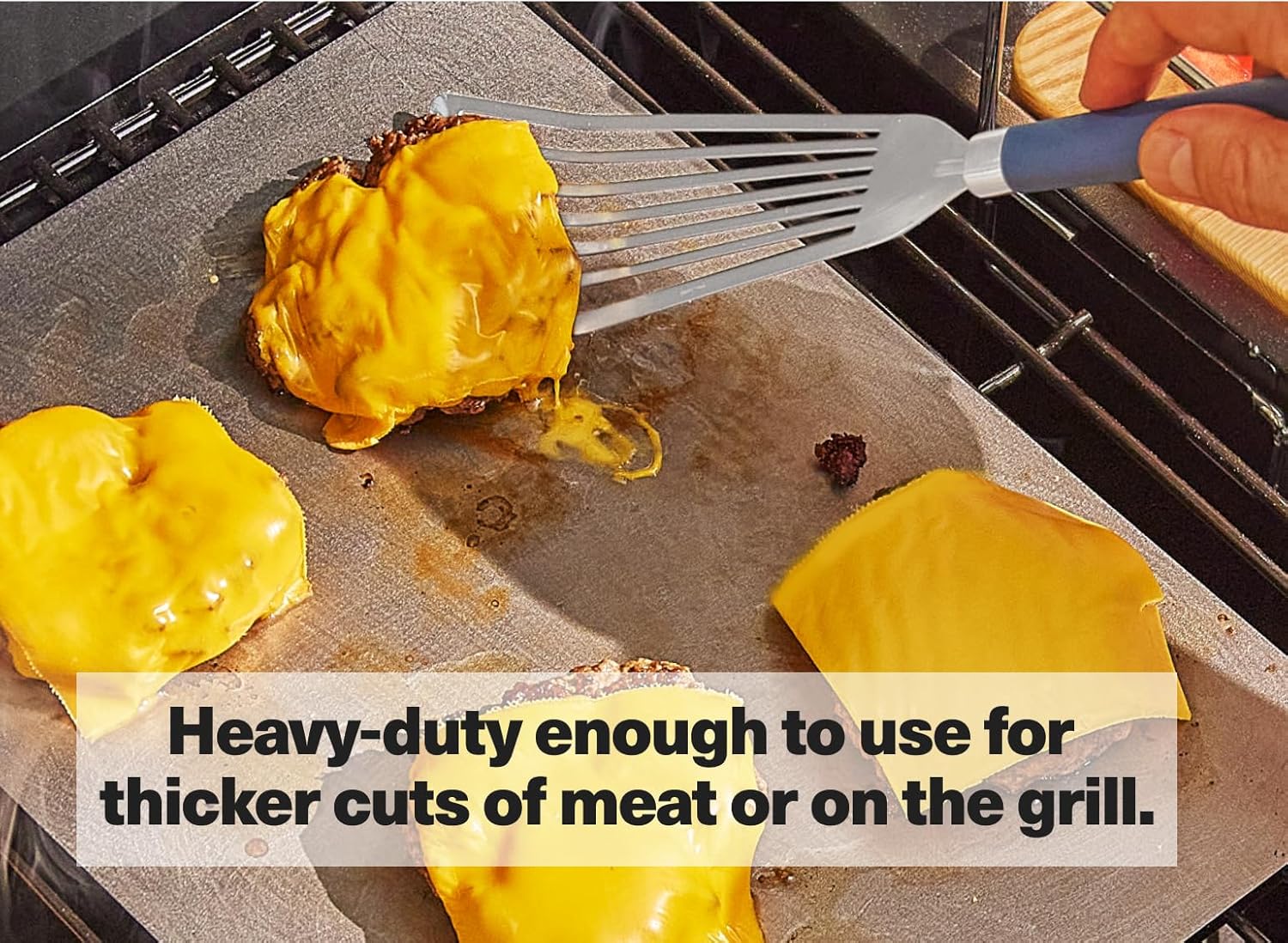 - PRECISION IN EVERY FLIP: This wide-slotted turner is perfect for cooking a variety of meals. Whether it's delicate eggs, sizzling fish, meaty burgers, or fluffy pancakes it allows you to fry and flip with ease, ensuring your creations are cooked just the way you desire.