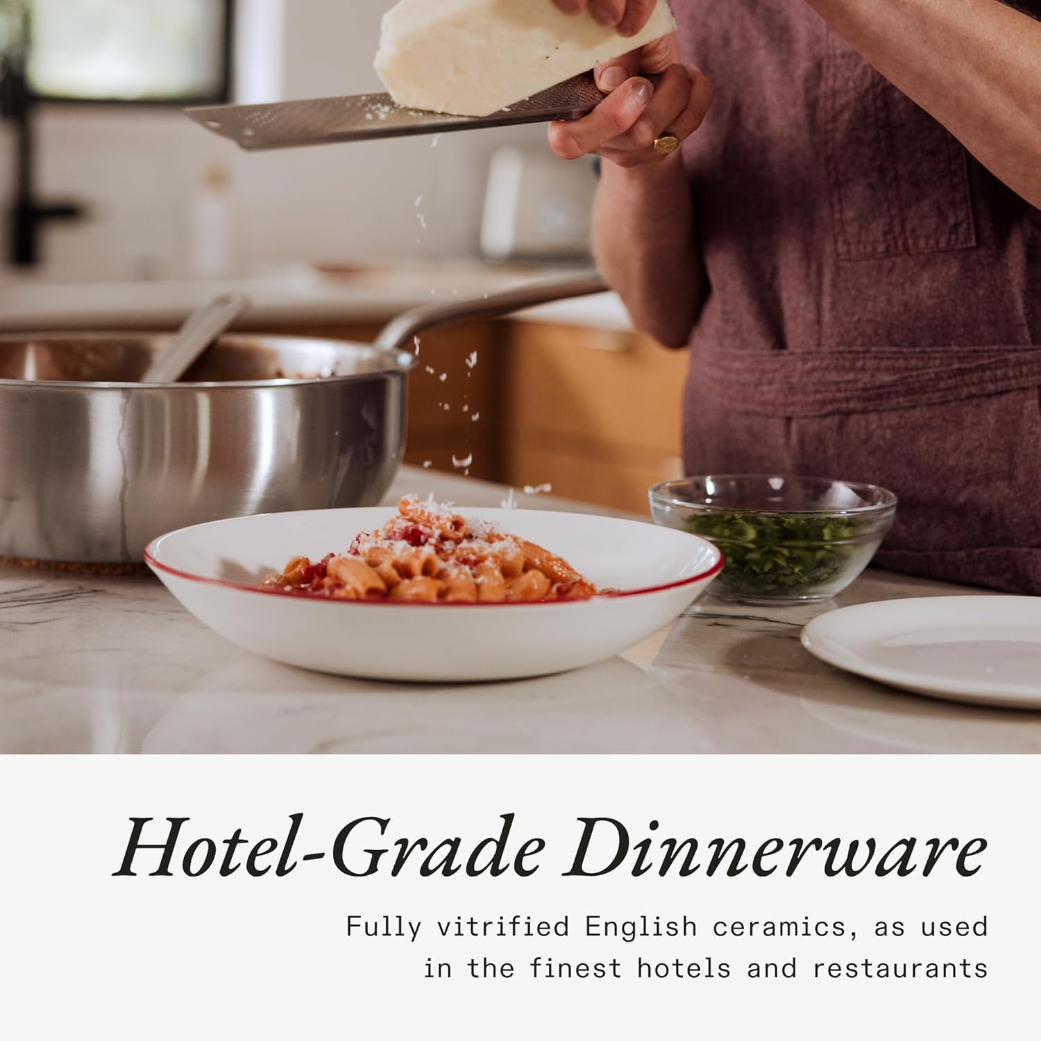 Made In Cookware - Set of 4 - Entrée Bowls - White With Red Rim - Porcelain - Crafted in England