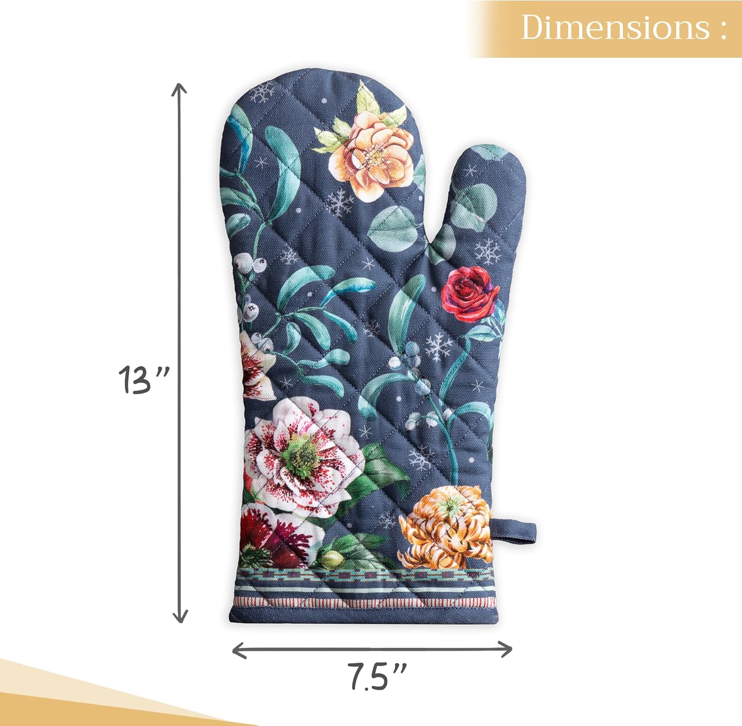 - Package includes: Maison d’Hermine oven mitt measures 7.5" x 13", offering excellent protection while baking or cooking. Made from 100% quilted cotton for superior grip and comfort. Designed in Europe and Made in India with high-quality craftsmanship