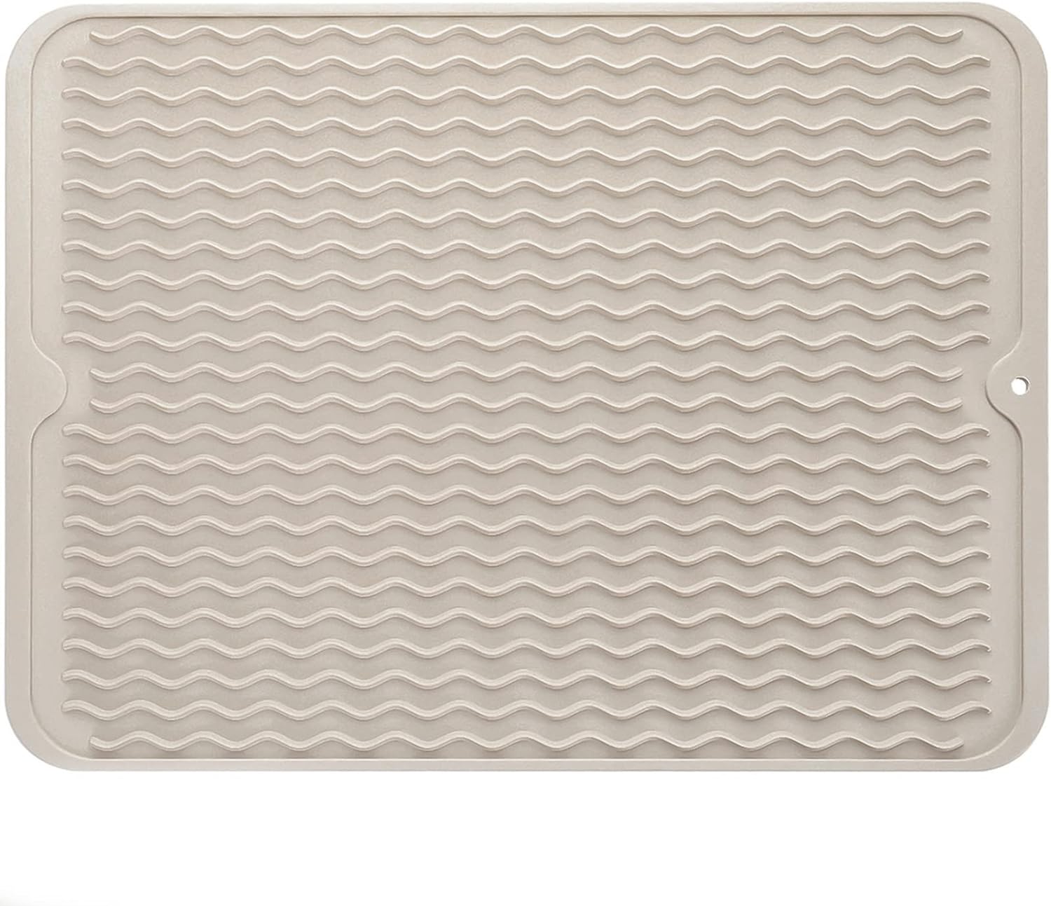 Silicone Dish Drying Mat for Multiple Usage,Easy clean,Eco-friendly,Heat-resistant Silicone Mat for Kitchen Counter or Sink,Refrigerator or drawer liner Tapioca L 16 inches x 12 inches