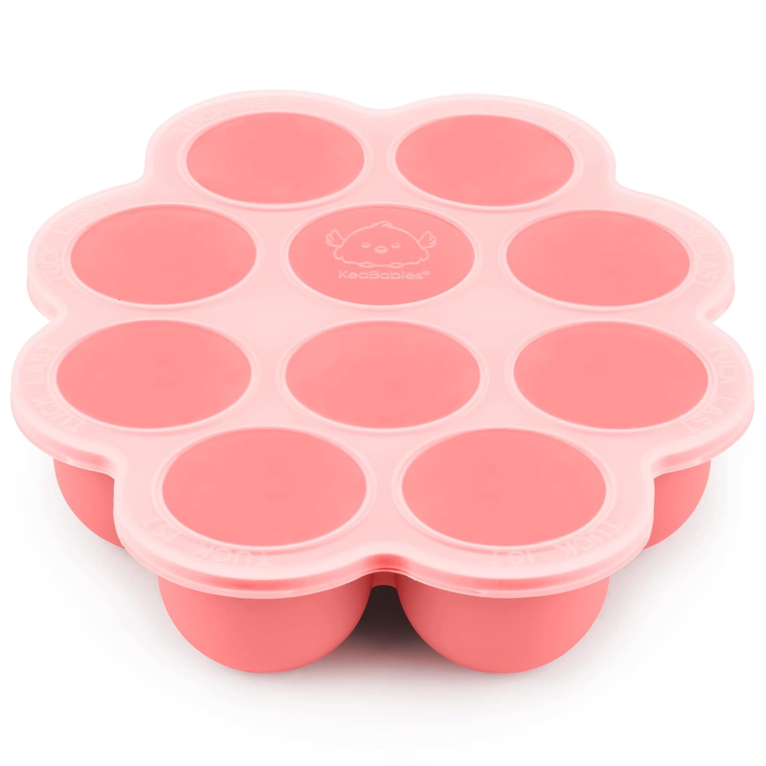 KeaBabies Silicone Food Freezer Trays with Lid, 2oz x 10 Pods Baby Food Storage Containers, Easy Puree Meal Prep, Breast Milk Silicone Freezer Molds, Dishwasher,Microwave Safe,BPA-Free(Blossom)