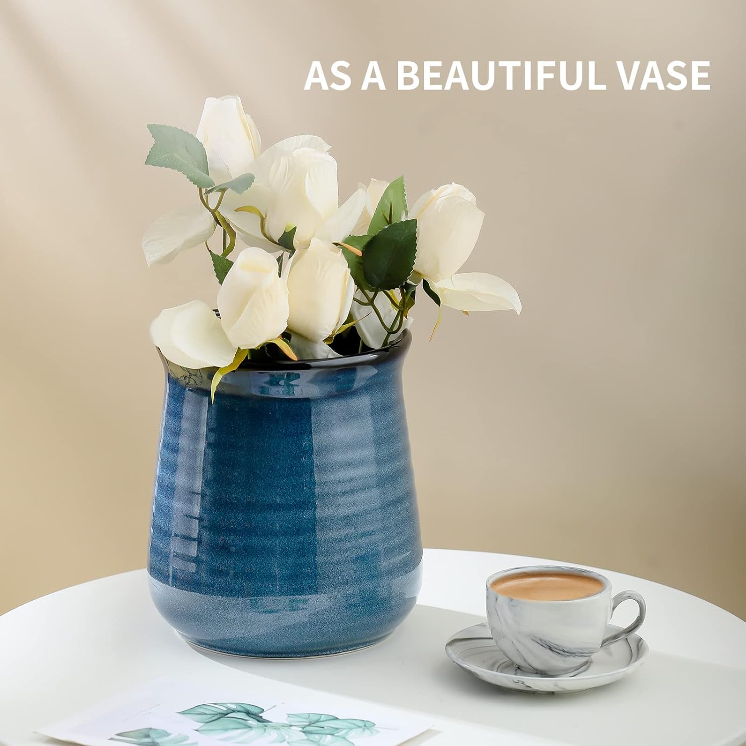 - VERSATILE Uses: The blue countertop design adds a unique retro style to your kitchen. Elegant navy blue kitchen utensil organizer can also be used as a wine cooler, makeup brush holder, flower vase, plant pot, or simply as a kitchen decoration.