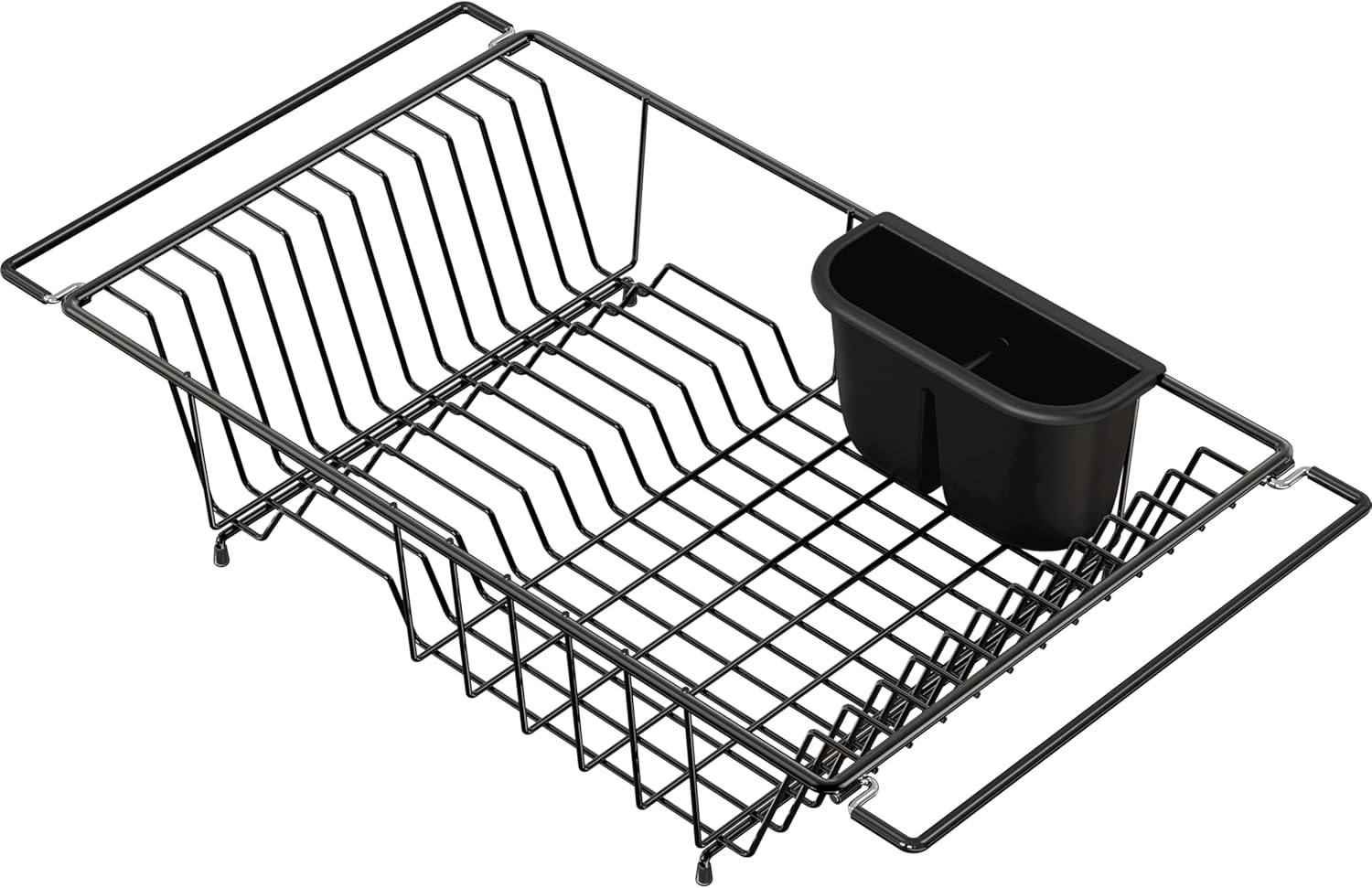 SIMPLE HOUSEWARE Large Over Sink Counter Top Stainless Steel Dish Drainer Drying Rack with Utensil Holder, Black