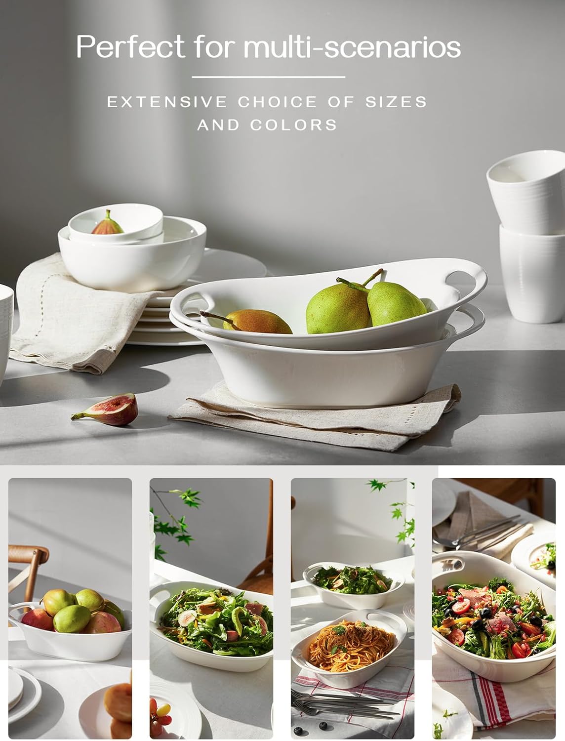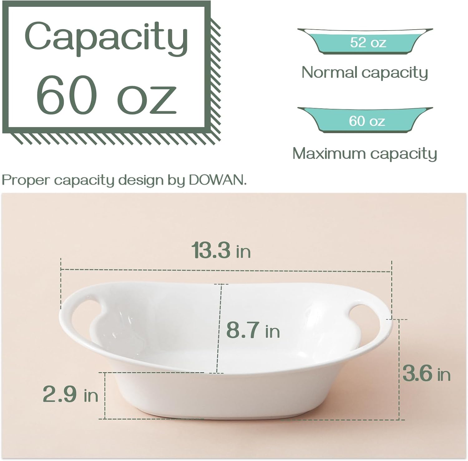 - Convenient Handled Design: This DOWAN large serving bowls has built-in handles on both sides, making it comfortable to hold and eaiser to move foods around at any time. Large Serving bowls with handles can avoid hurting your hands by serving hot food.