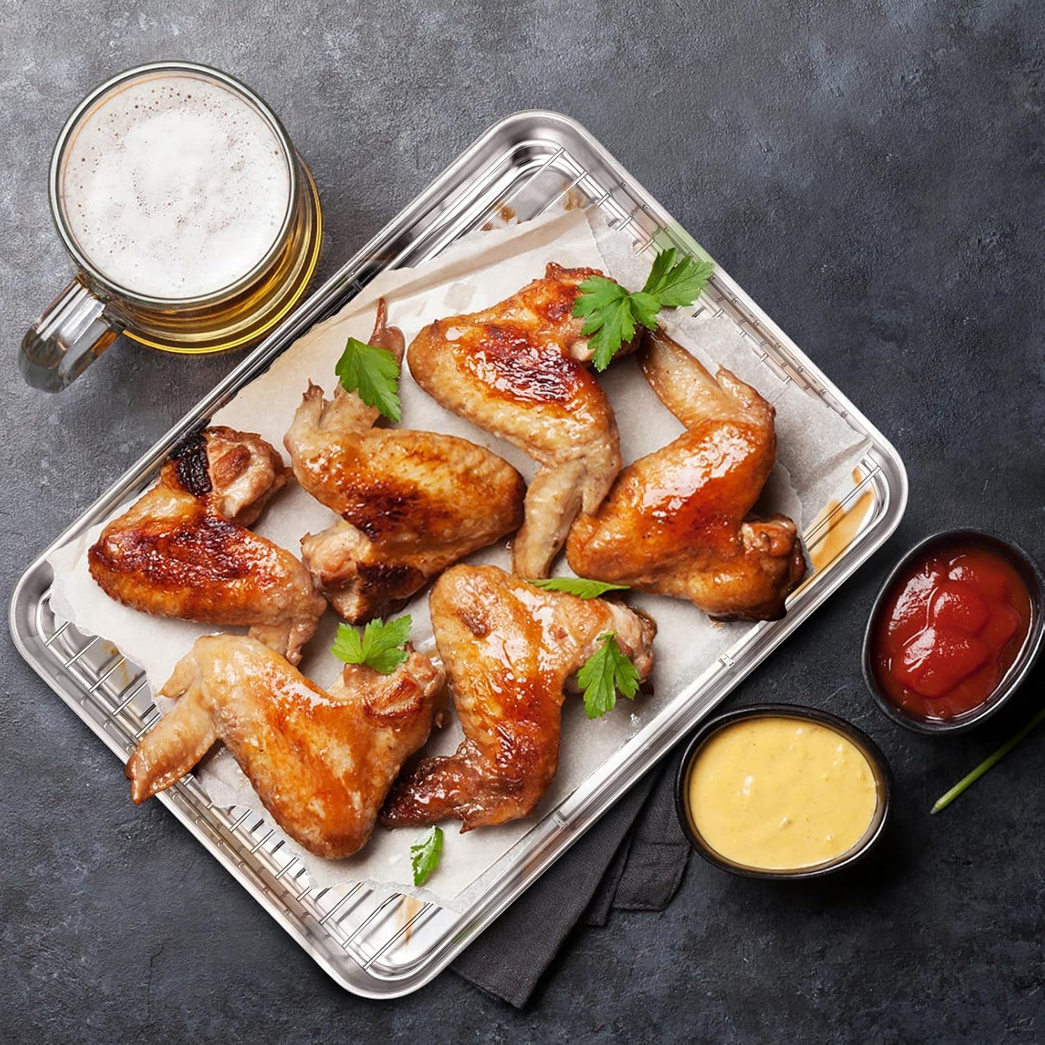 Stainless Steel Baking Sheet with Rack Set, E-far 12.4”x9.7” Cookie Sheet Broiling Pan for Oven, Rimmed Metal Tray with Wire Rack for Cooking/Baking/Cooling/Bacon, Non-toxic & Dishwasher Safe
