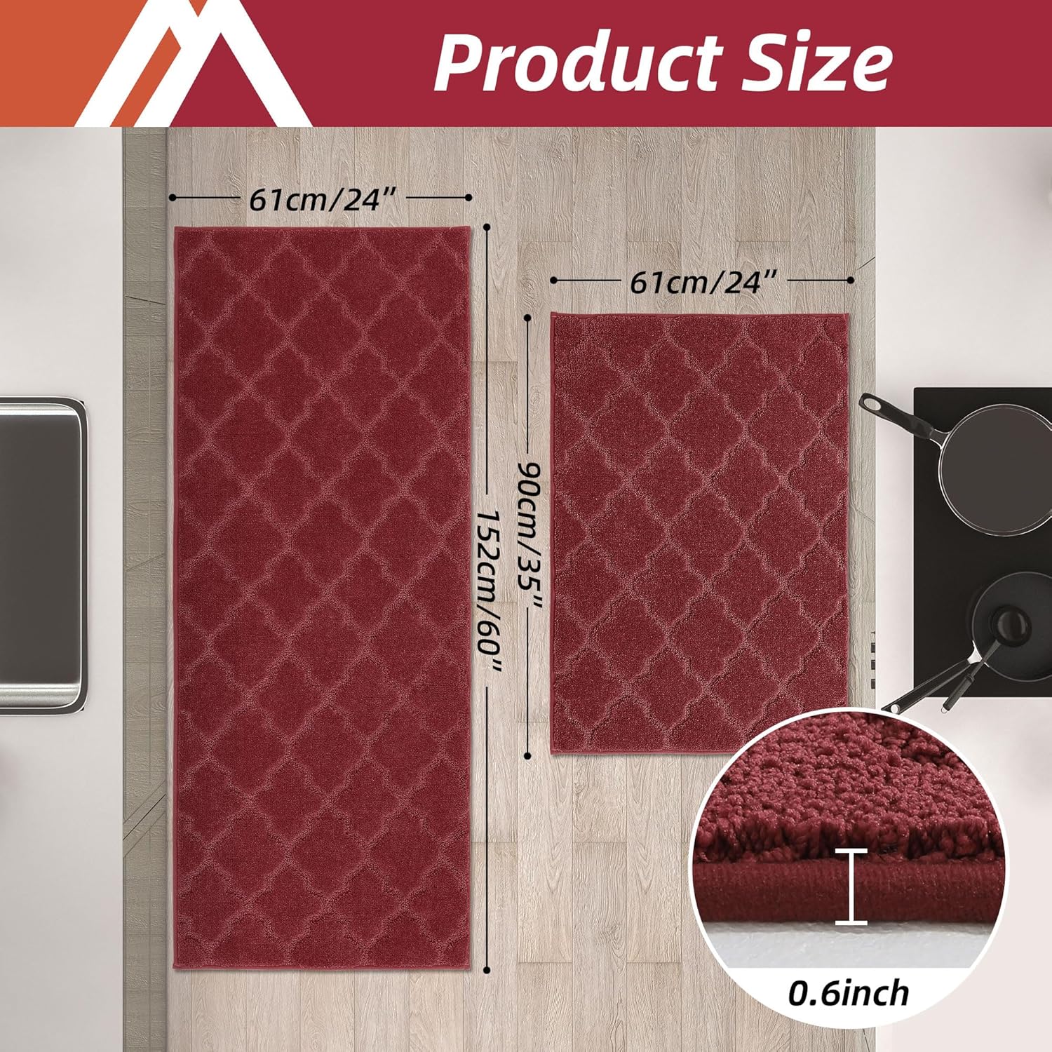 COSY HOMEER Soft Kitchen Rugs [2 PCS] for in Front of Sink Super Absorbent Kitchen Floor Mats and Mats 24x35 Inch/24X60 Non-Skid Kitchen Mat Standing Mat Washable,Polyester,Red