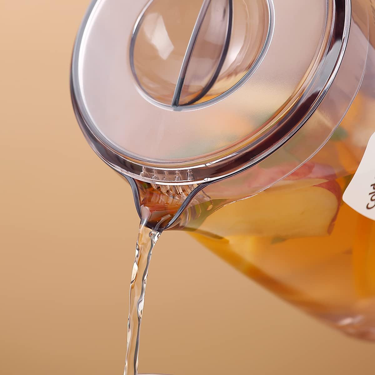 - 【High Quality Material】: This pitchers is made of high-quality food-grade plastic, the temperature-resistant material is upgraded, PBA-free. Unlike glass, which is fragile, this material brings effective compression resistance, they are less deformable and have weight Light weight, suitable for different groups of people in your family.