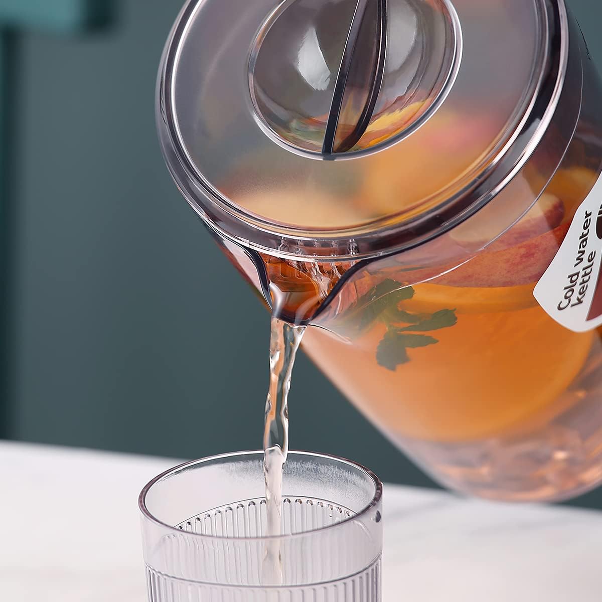 - 【High Quality Material】: This pitchers is made of high-quality food-grade plastic, the temperature-resistant material is upgraded, PBA-free. Unlike glass, which is fragile, this material brings effective compression resistance, they are less deformable and have weight Light weight, suitable for different groups of people in your family.