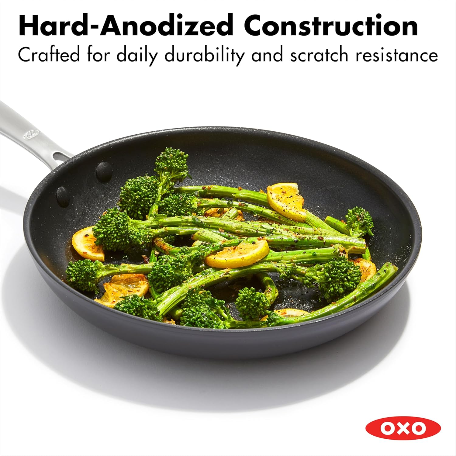 OXO Enhanced, 8" 10" and 12" 3 Piece Frying Pan Skillet Set, Healthy Ceramic Nonstick, PFAS-Free, Stainless Steel Handle, Dishwasher Safe, Oven Safe, Black
