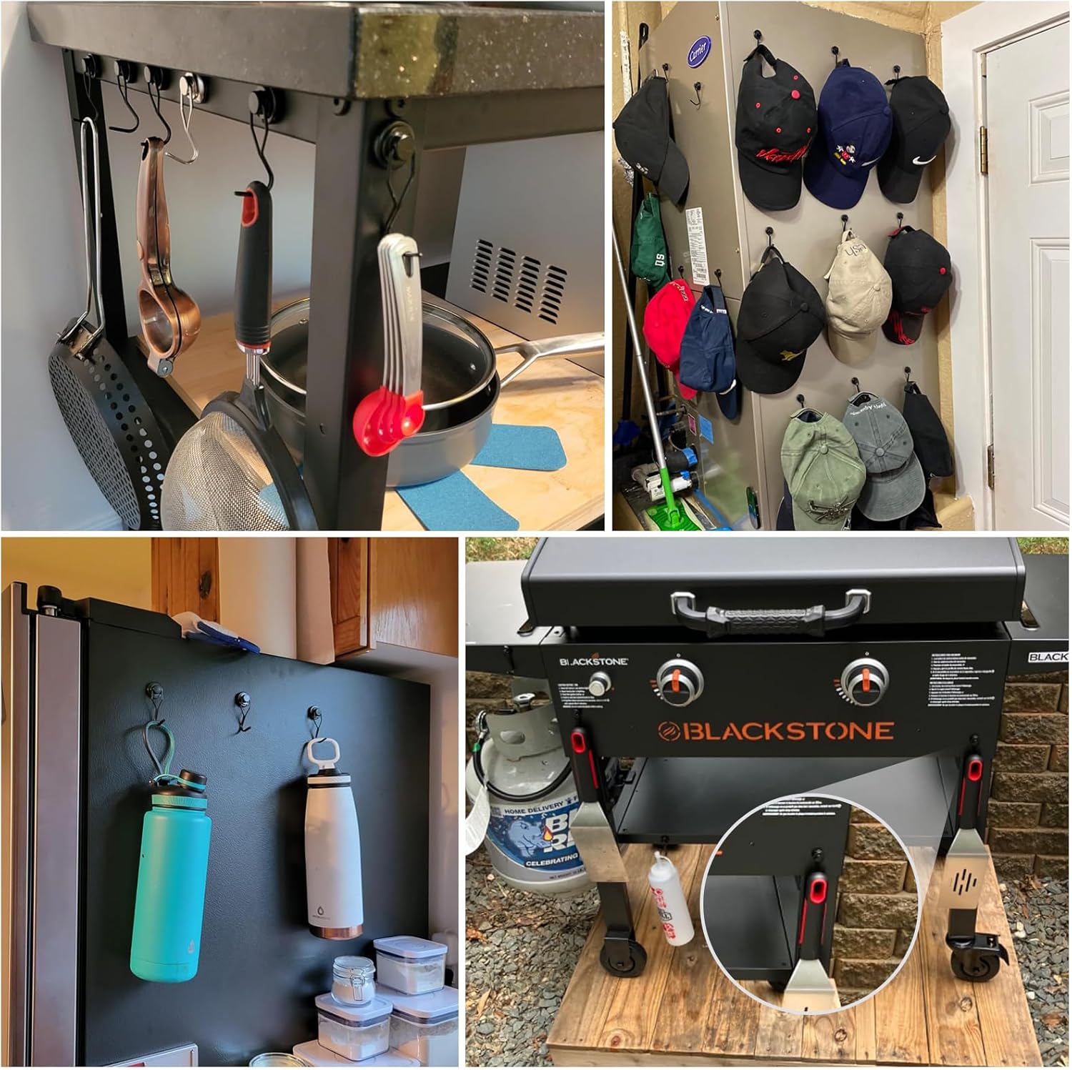 - 【 Widely Applied 】 Sturdy magnets hooks, simple structure, convenient for installation and use. Used for fixing, connecting and hanging cups, ironware, tools and other objects (hats, keys, towels). Heavy-duty magnetic hooks are also widely used in grills, cruise cabins essentials, refrigerators, kitchens, workplaces, offices, garages, indoor and outdoor environments, etc.