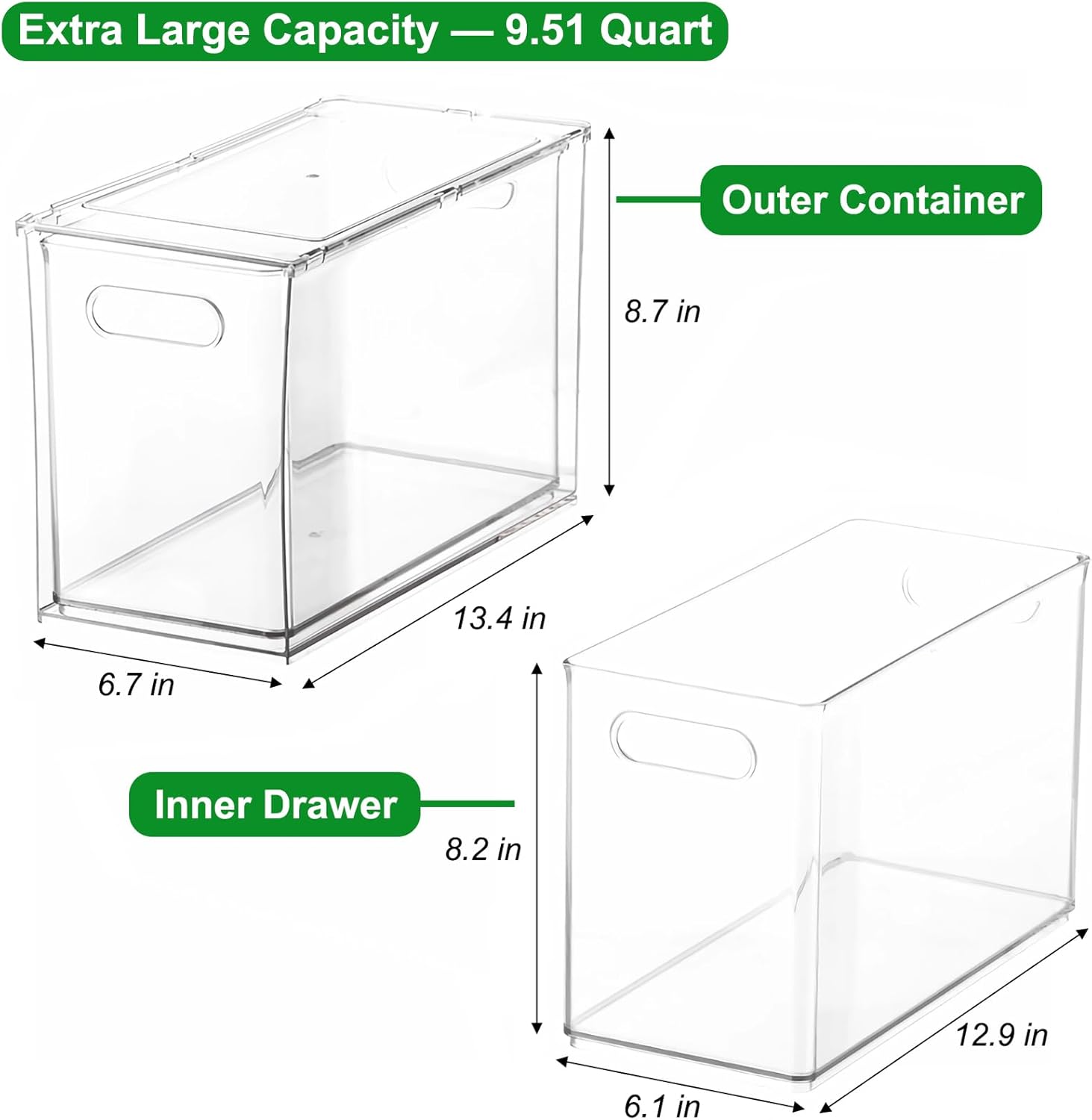 Taiuloo Clear Stackable Storage Drawers - 9.51 Quart Large Plastic Organizer Bins with Pull-Out Drawer, Kitchen Fridge, Bathroom Vanity & Pantry Cabinet Organization