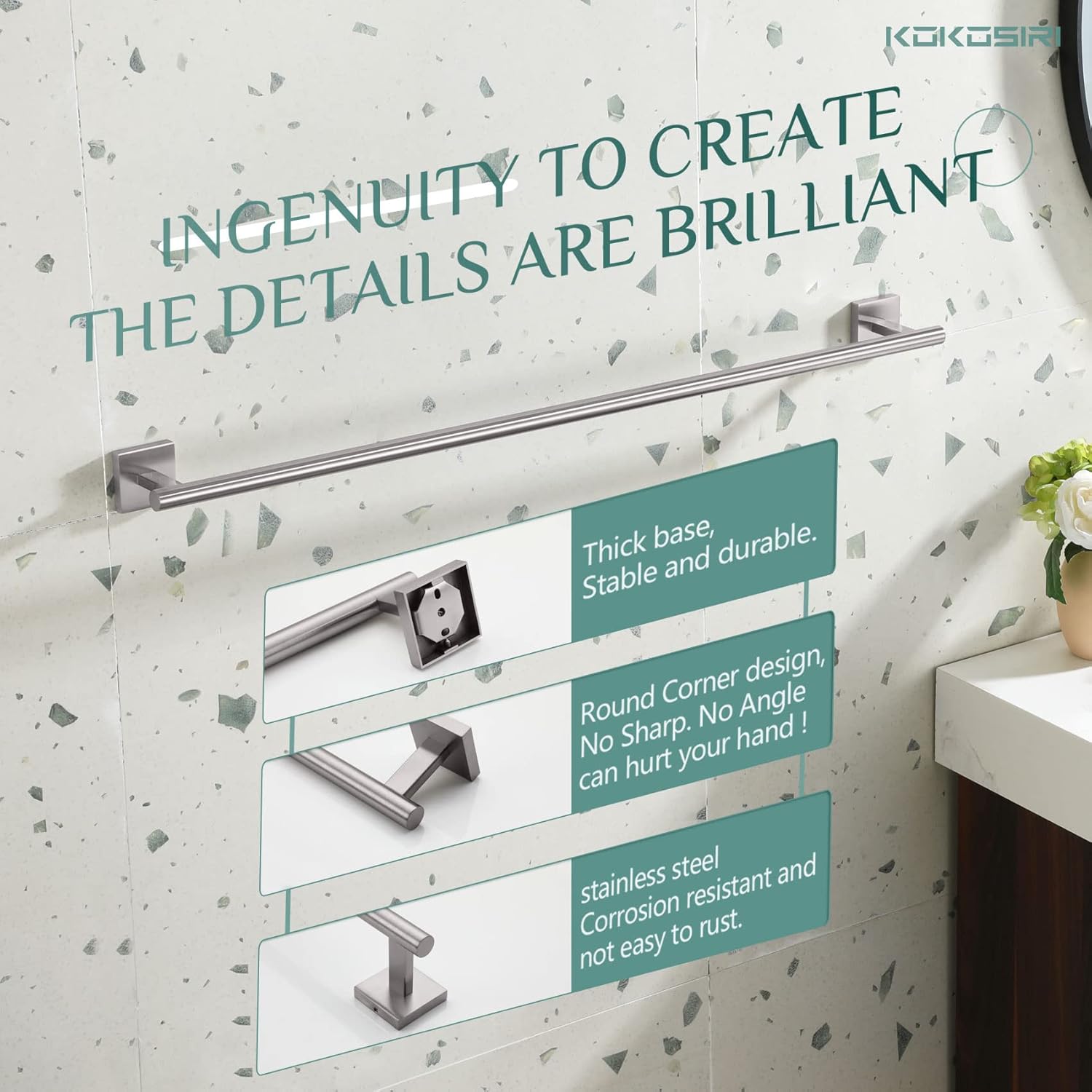 - ◄ Rustproof ► KOKOSIRI towel bar made of SUS 304 Stainless Steel (premium stainless steel). All metal design and used of high-grade steel which can resist rust and corrosion. For your health, all the materials we use are the highest quality and harmless. You can rest assured to use all of our products