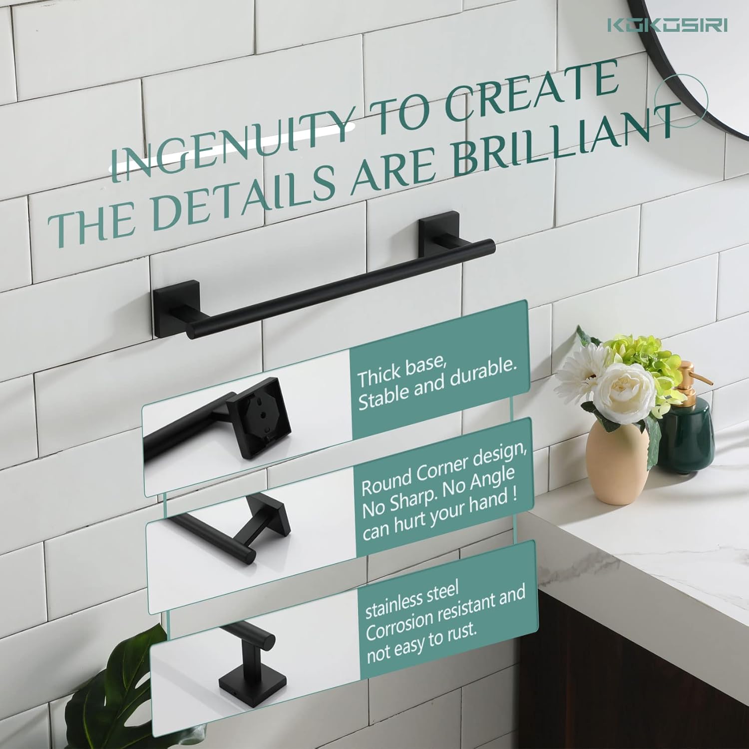 - ◄ Rustproof ► KOKOSIRI towel bar made of SUS 304 Stainless Steel (premium stainless steel). All metal design and used of high-grade steel which can resist rust and corrosion. For your health, all the materials we use are the highest quality and harmless. You can rest assured to use all of our products