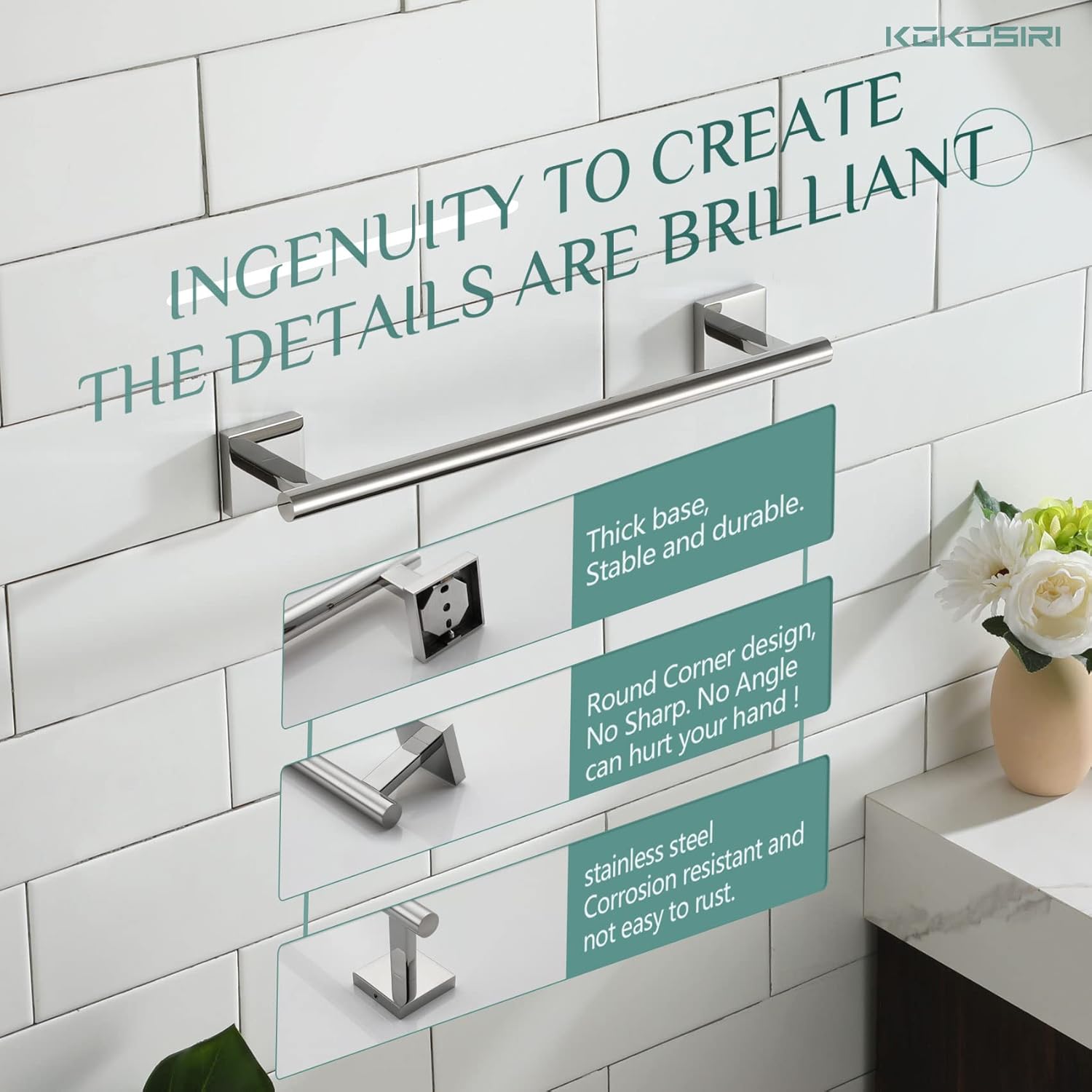 - ◄ Rustproof ► KOKOSIRI towel bar made of SUS 304 Stainless Steel (premium stainless steel). All metal design and used of high-grade steel which can resist rust and corrosion. For your health, all the materials we use are the highest quality and harmless. You can rest assured to use all of our products