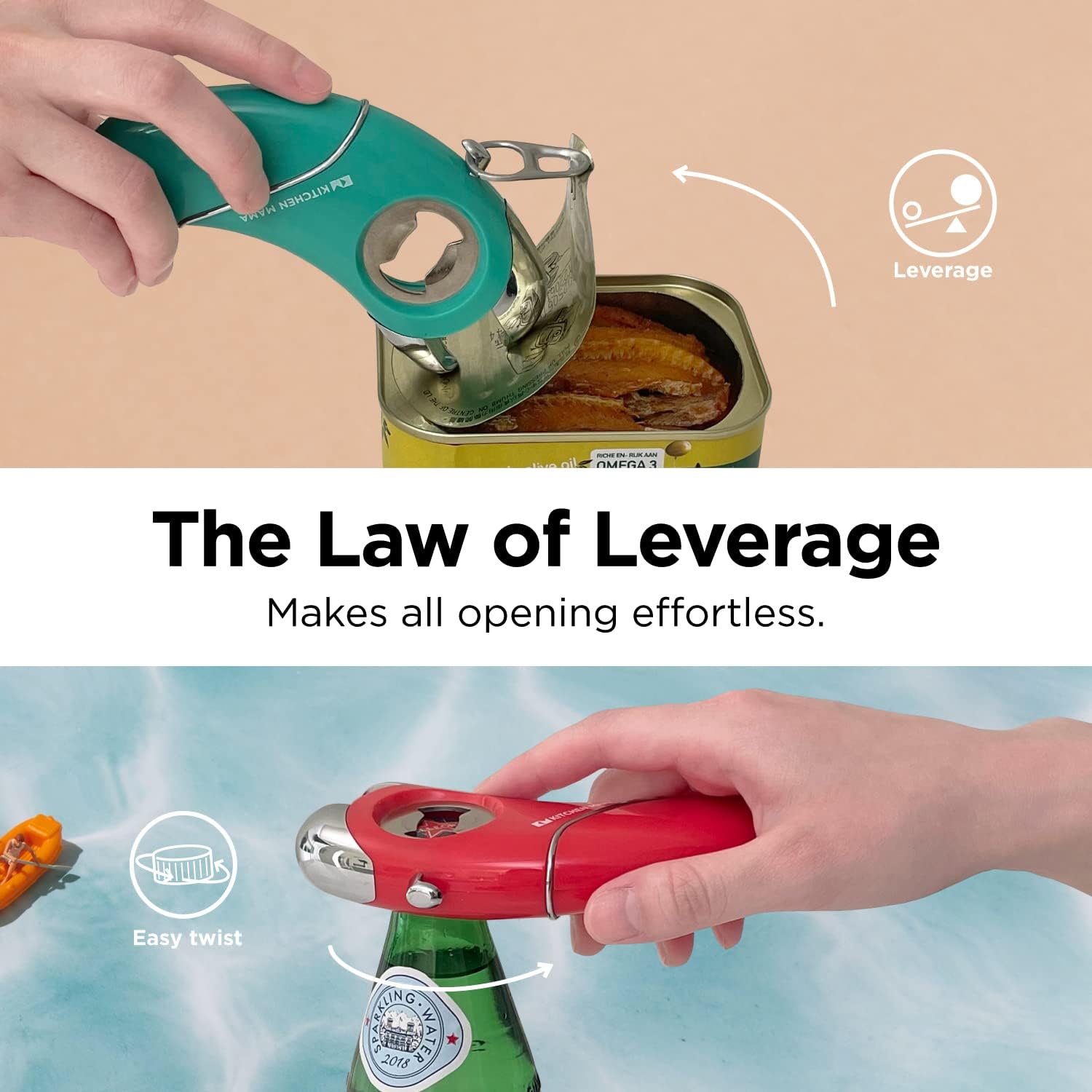 Kitchen Mama Epic One Multifunction Opener: Magnetic Bottle Opener, Beer Soda Opener, Effortless Jar Lid Opener for Seniors and Elderly with weak Hands and Arthritis, Essential Kitchen Gadget (Teal)