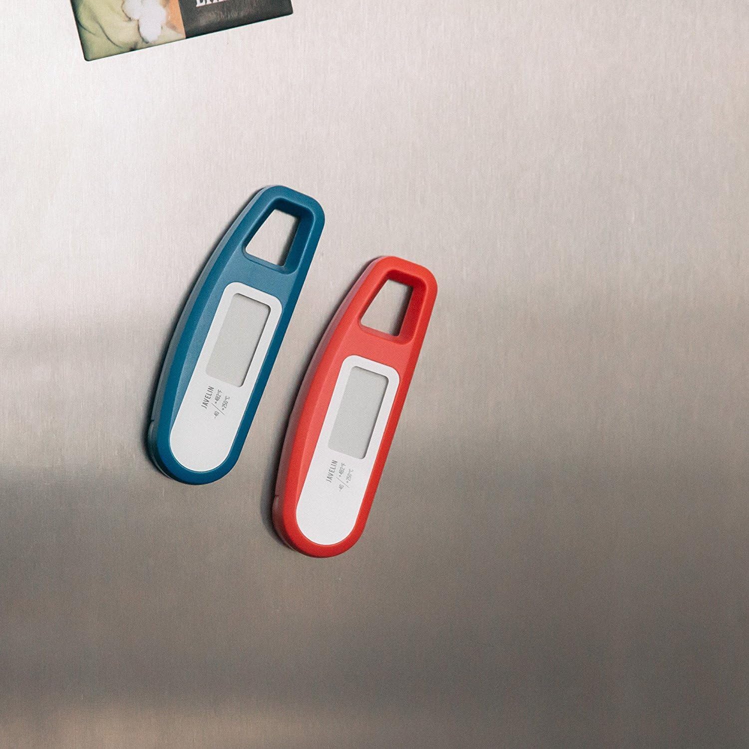 - With 𝗜𝗣𝟲𝟱-𝗿𝗮𝘁𝗲𝗱 𝘄𝗮𝘁𝗲𝗿 𝗿𝗲𝘀𝗶𝘀𝘁𝗮𝗻𝘁 construction, easy-to-read 1.4-inch display, and integrated magnets for convenient storage, Javelin has become the go-to thermometer for both professional chefs and home cooks.