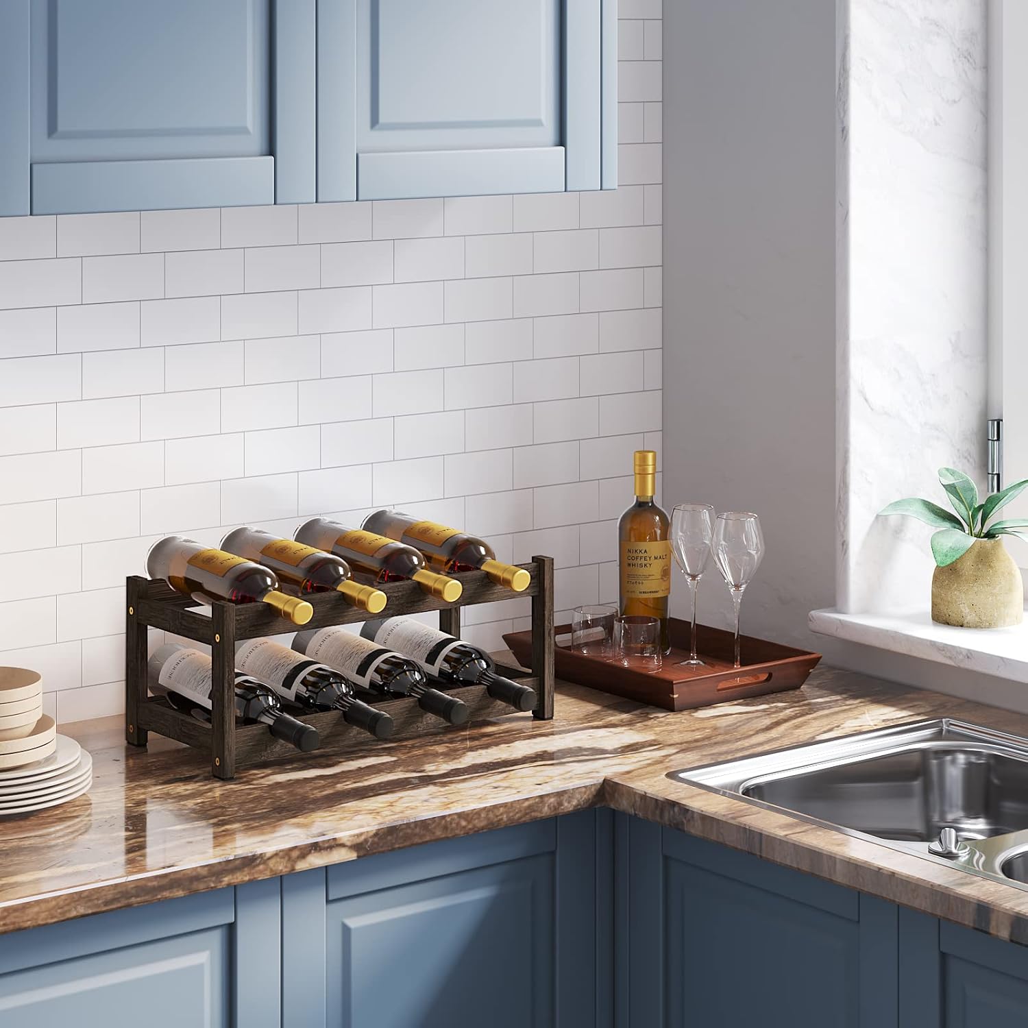 - Space Saving and Fits Any Room or Decor: It's functional, coordinates well with existing dΓ©cor, and ideal for any flat surface area in a pantry, storage cabinet, kitchen, dining room, basement, wine cellar, or bar; Whether you want a rustic wine holders stands, modern or industrial wine rack, this wine storage rack fits anywhere in your home