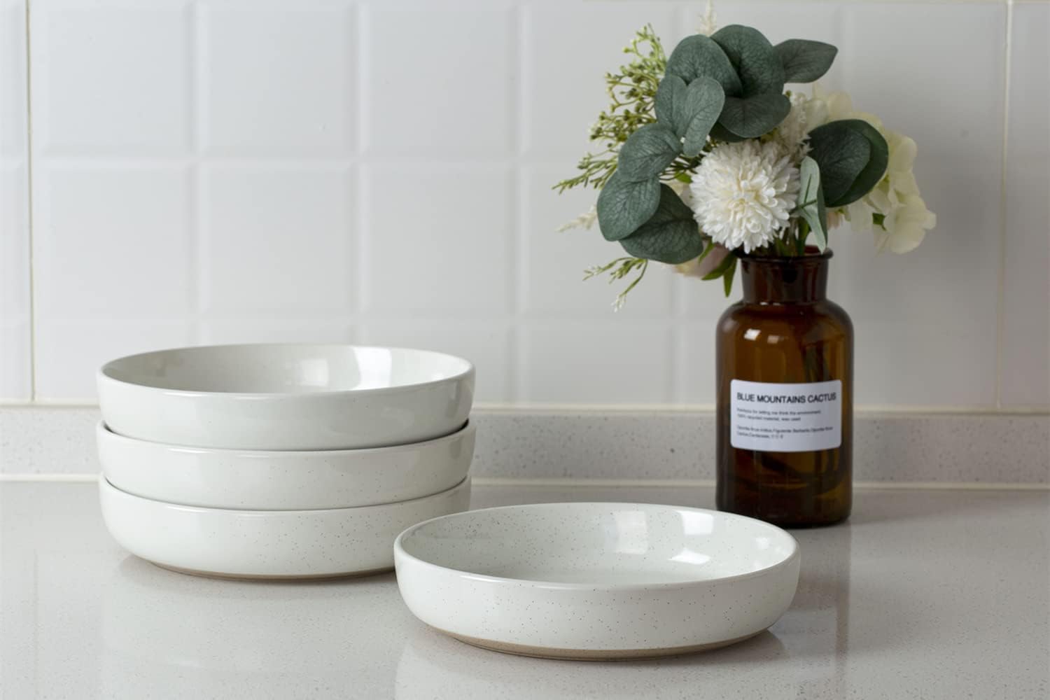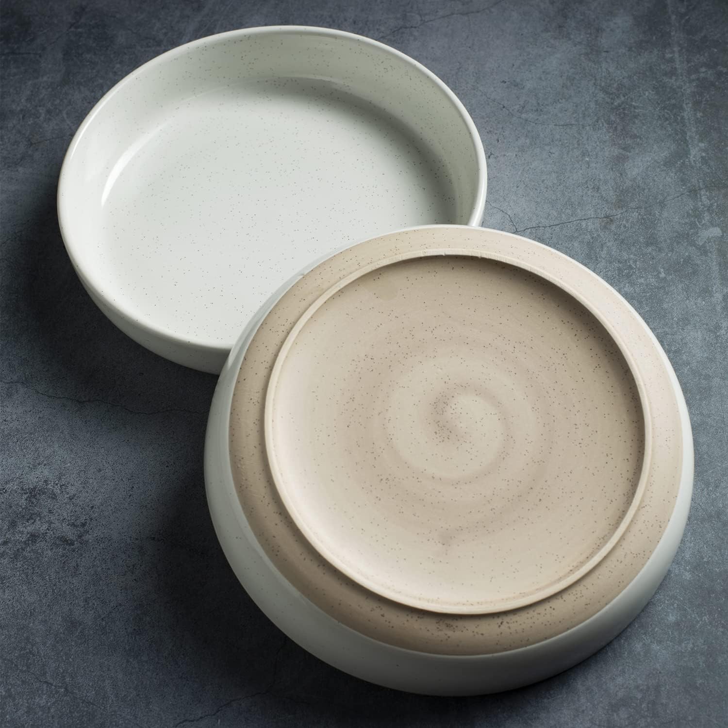 - 【FUN SPECKLED DESIGN】These pasta bowl feature a minimalist & fashion design. Spruce up meal time with these large bowls that feature a black speckled pattern, making each piece unique.