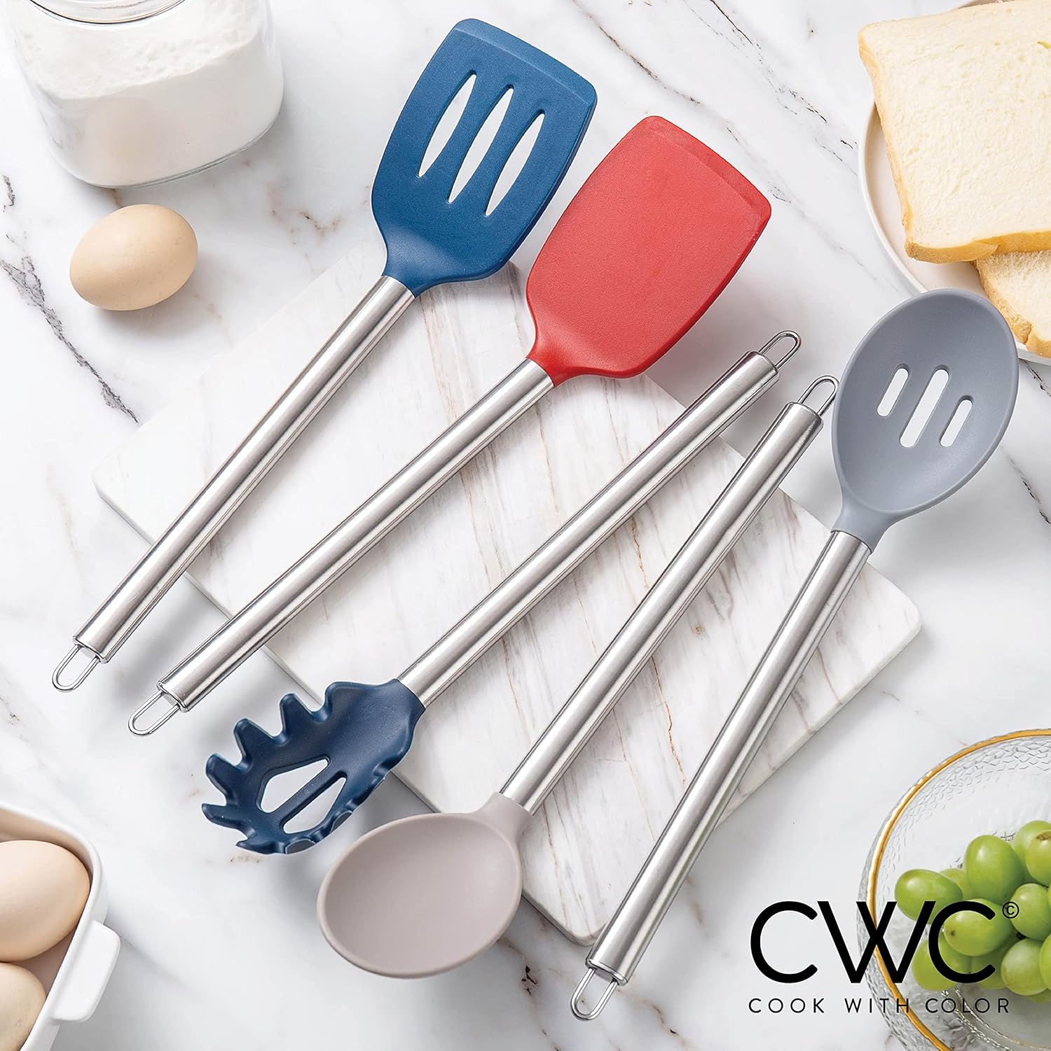 COOK WITH COLOR Silicone Cooking Utensils, Kitchen Utensil Set, Easy to Clean Silicone Kitchen Utensils, Cooking Utensils for Nonstick Cookware, Kitchen Gadgets Set, 5 Pieces, Red