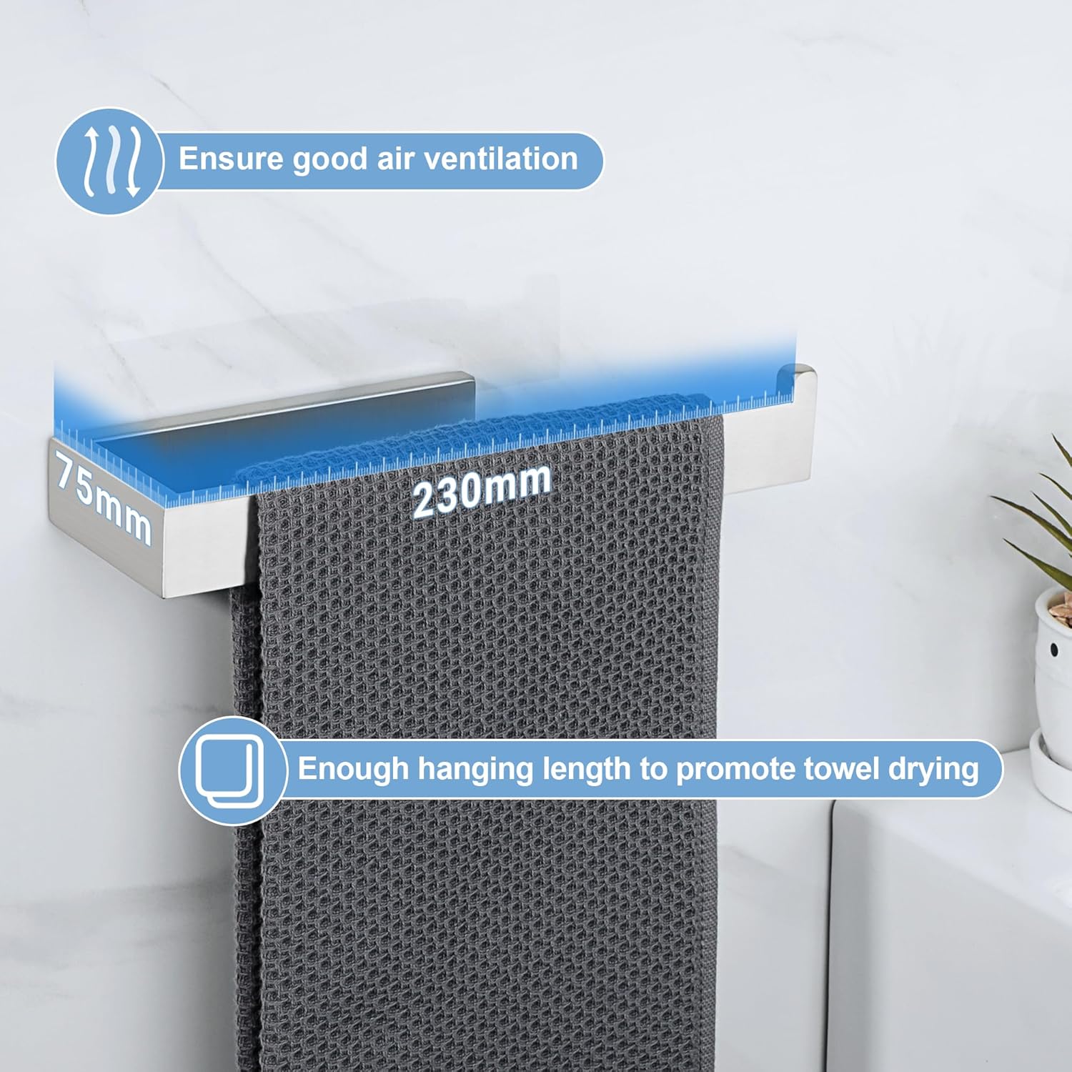 - WIDE APPLICATION - Perfect for shower, bathroom, kitchen, laundry room, cabinets, wash basins, etc. Please note, the brushed nickel towel bar can only be fixed by drilling, not by pasting.