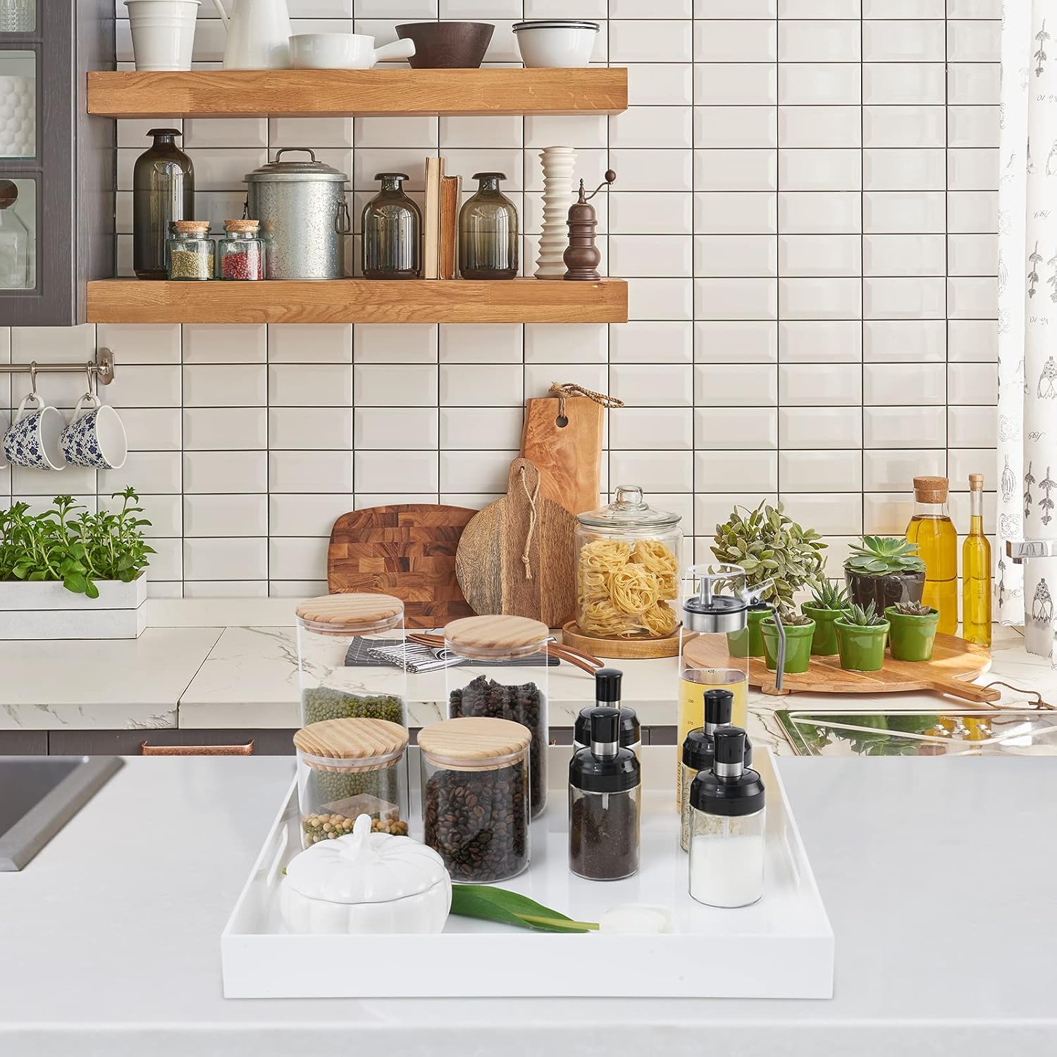 - Multi-purpose: Elegant Square ottoman tray with safe rounded edge, It’s just the right size tray to put on your rectangular or square ottoman, The tray can be placed in multiple areas also, Dinning room kitchen、Coffee table, It also can be used as vanity trays
