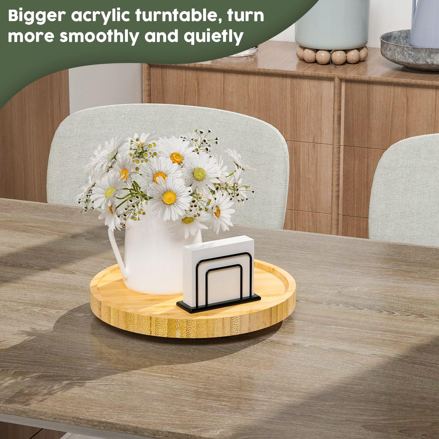 Lazy Susan Organizer, 9 Inch Non-Skid Bamboo Lazy Susan for Table Storage Napkin Holder Vase, Wood Turntable for Kitchen Countertop Organizer
