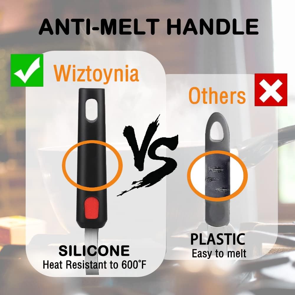 - Comfortable Anti-Slip Handle: The sturdy stainless steel core and thickened silicone handle design for more fit to the palm, making the grip more comfortable and firm, and effectively nonslip and insulates heat