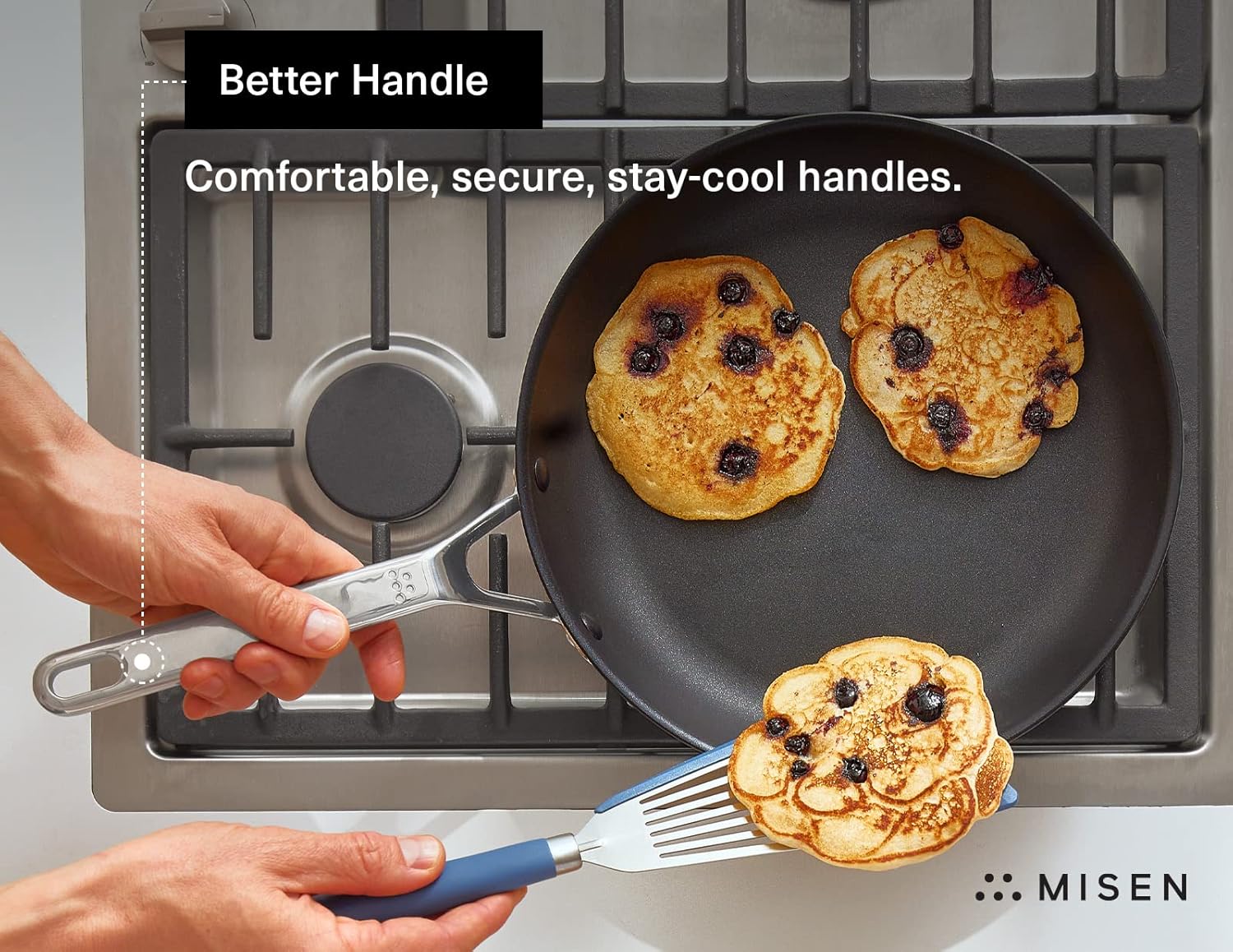 - Say Goodbye to Stuck Food: Misen's Nonstick Frying Pan Set is your kitchen sidekick. These 8, 10, and 12-inch pans beat the expensive ones – no more food sticking!