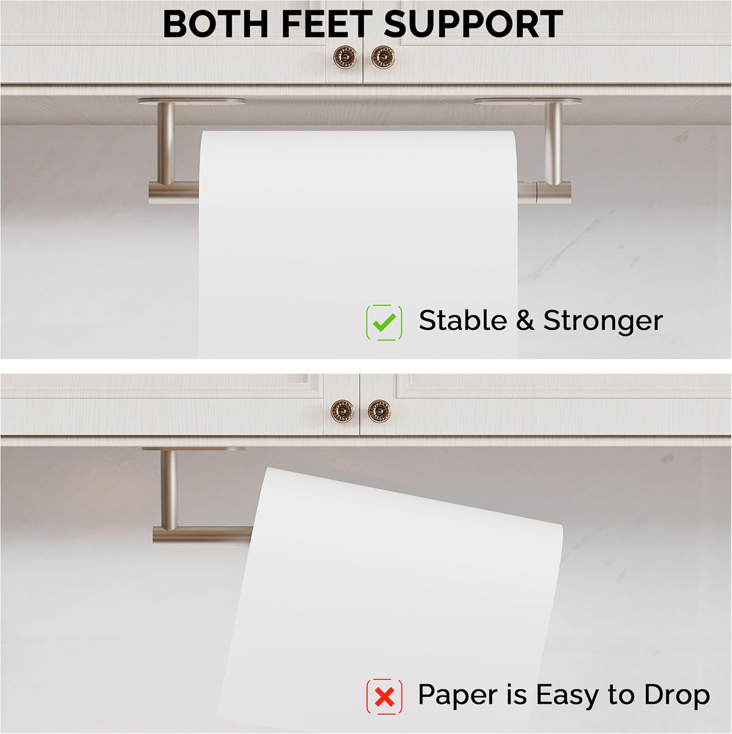 Paper Towel Holder Under Cabinet, Self Adhesive or Wall Mounted SUS304 Stainless Steel Paper Towel Holder for Kitchen, Bathroom, Farmhouse, Barbecue and Laundry (Silver)