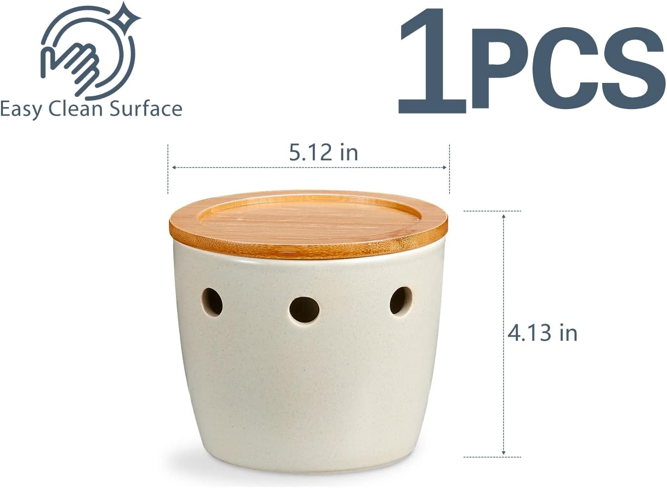 - 【Wide Opening Garlic Keeper】: Measures 5.12(Dia) x 4.25(H) inches, this large garlic storage container can hold 6 to 8 heads of regular size garlic. Wide opening for easier storing and taking.