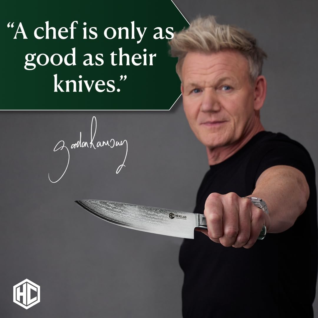 HexClad Chef's Knife, 8-Inch Japanese Damascus Stainless Steel Blade, Pakkawood Handle