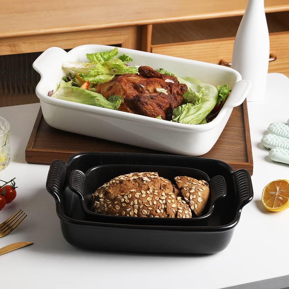 Sweejar Baking Pans Set, Ceramic 9x13 Baking Dish with Handle, Rectangular Casserole Dishes for Oven, Bakeware Sets of 3, Durable Lasagna Pan Deep for Kitchen, Banquet, Wedding Gift(Black)