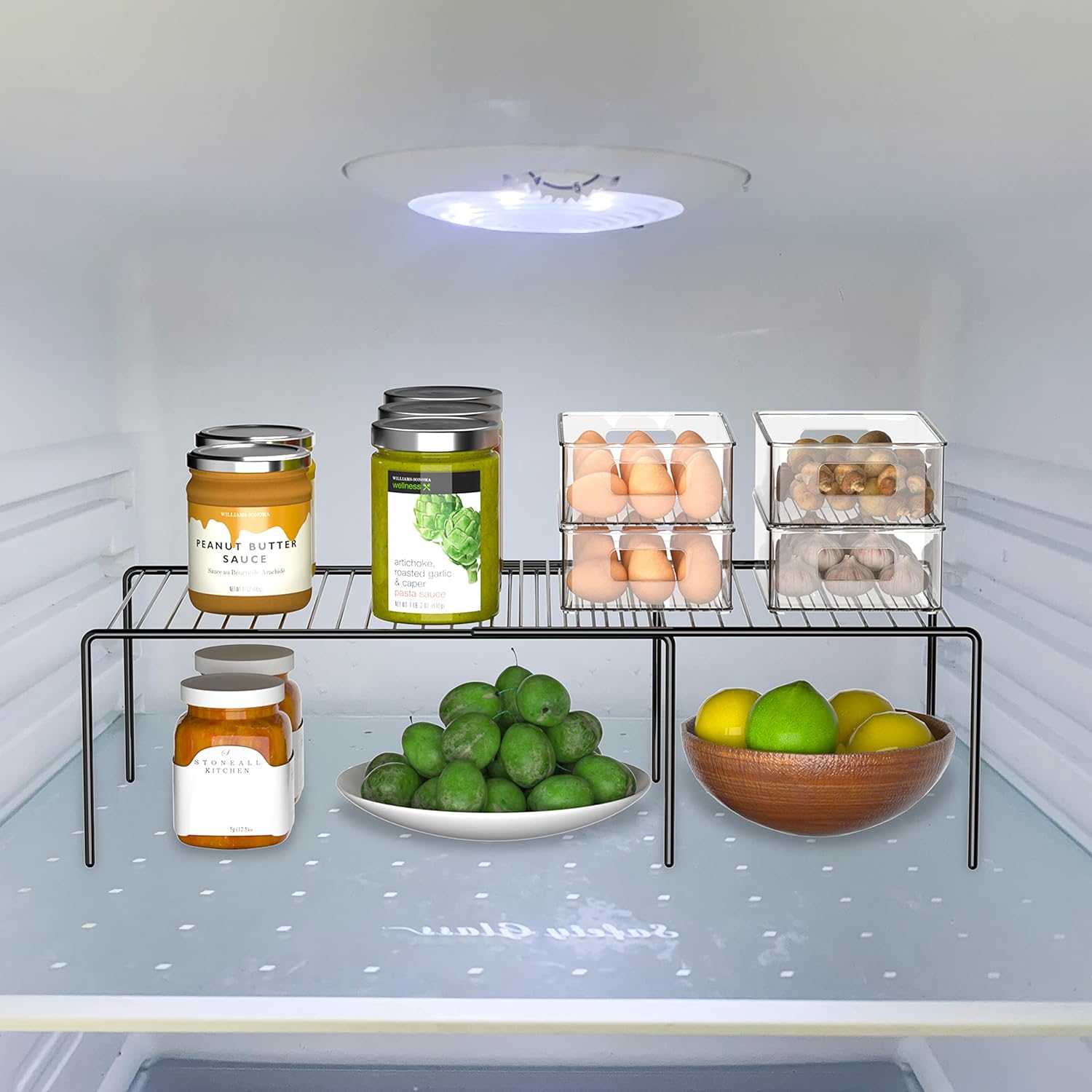Redrubbit Expandable Shelf Rack, Rustproof Metal Storage Organizer for Kitchen, Fridge, Bathroom, Black