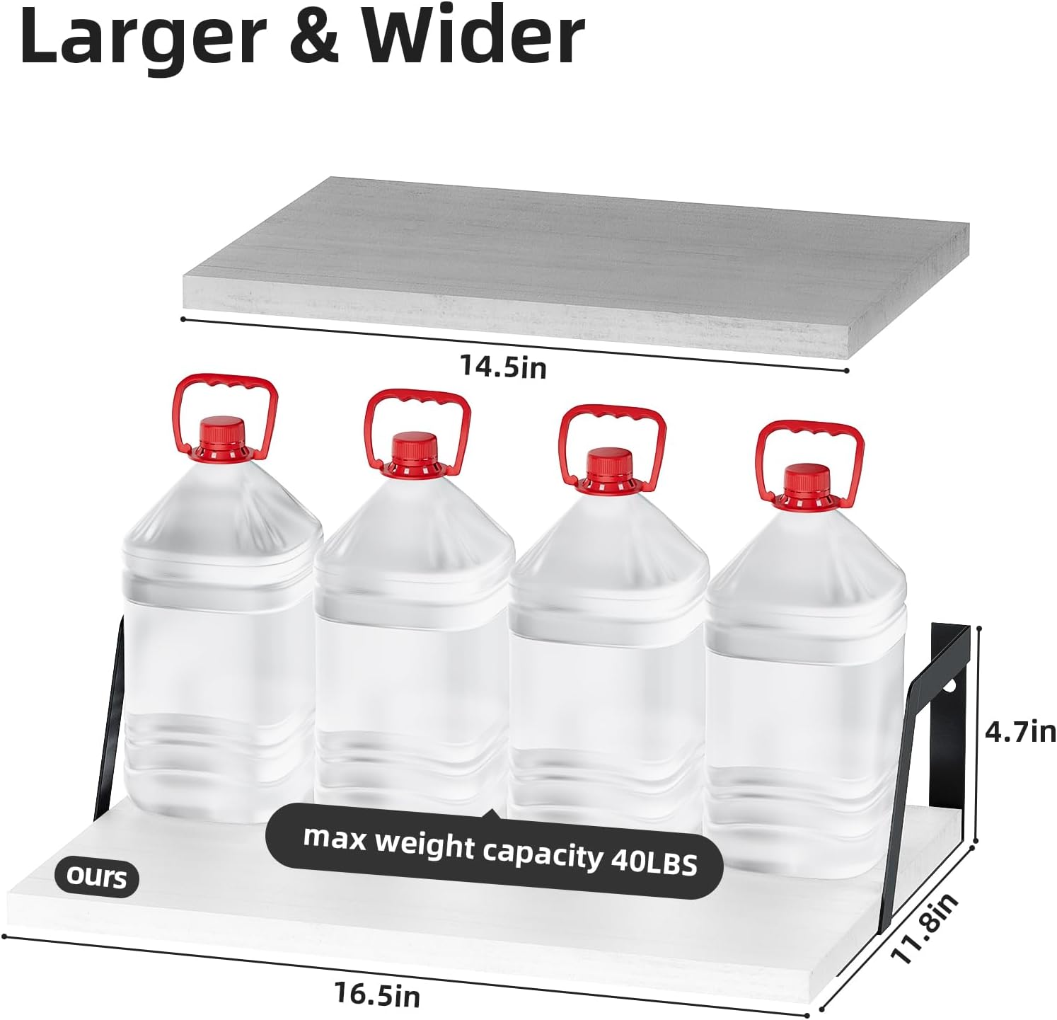 - Large Capacity & Durability: Large floating shelf measuring 16.81''L x 12.13''Wx 3.11''H offers more storage space. Shelves made of solid wood and metal are sturdy enough to hold your favorite items.