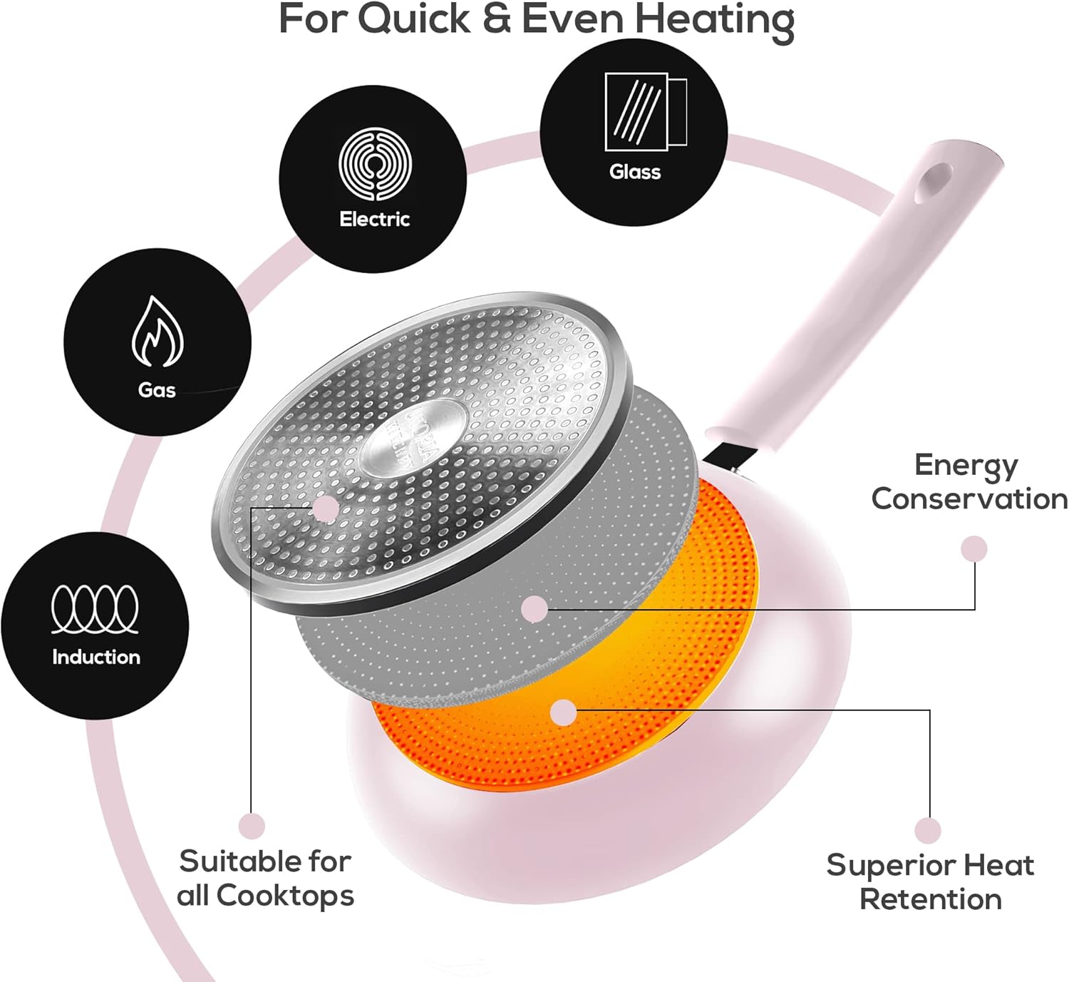 - HARBORING A CULINARY HAVEN β Explore new recipes and savor the delectable aroma, with the impeccably fabricated, nonstick even-heat distributed frying pans, ideal for all types of cook-tops, be it electric or ceramic.