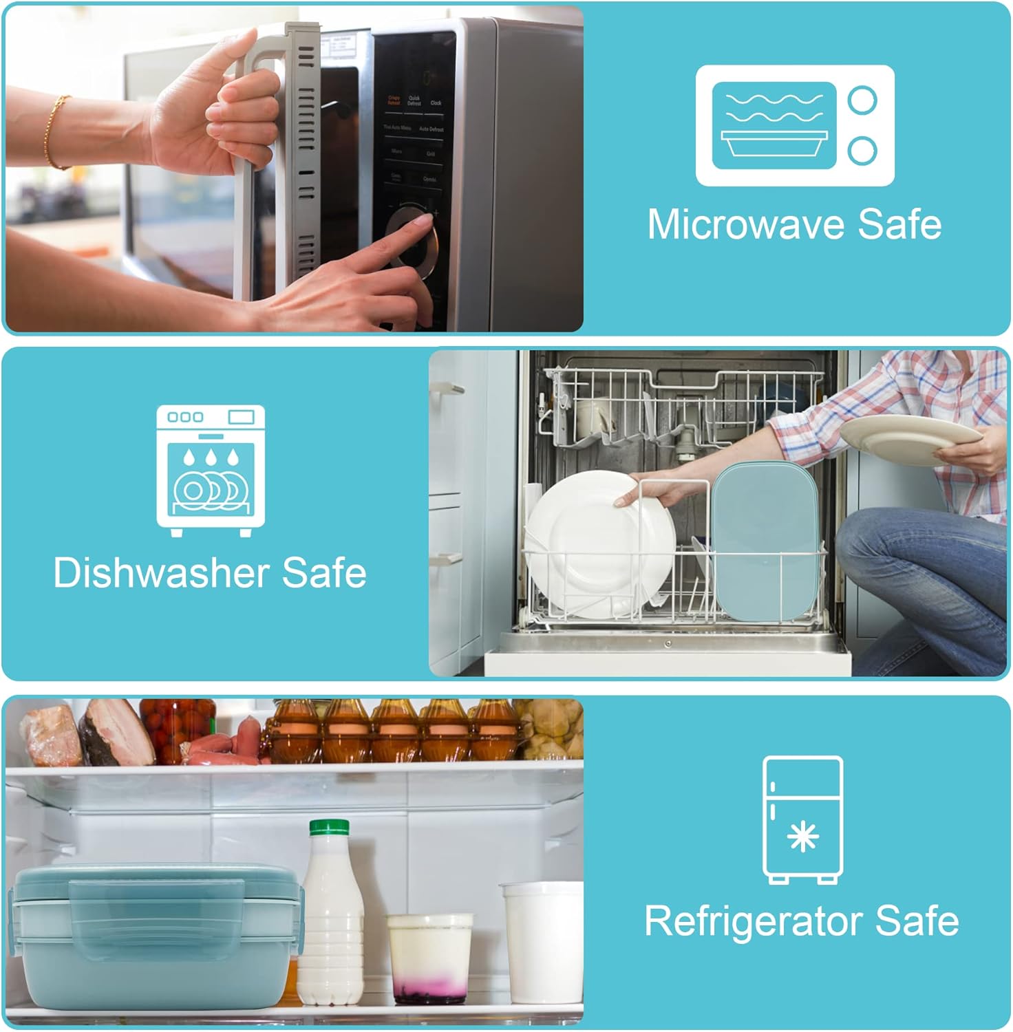 - Easy to Clean and Carry: Lunch box can be washed with soapy water or put in the dishwasher, also suitable for microwave and refrigerator. (Remove the lid when using the microwave and dishwasher)