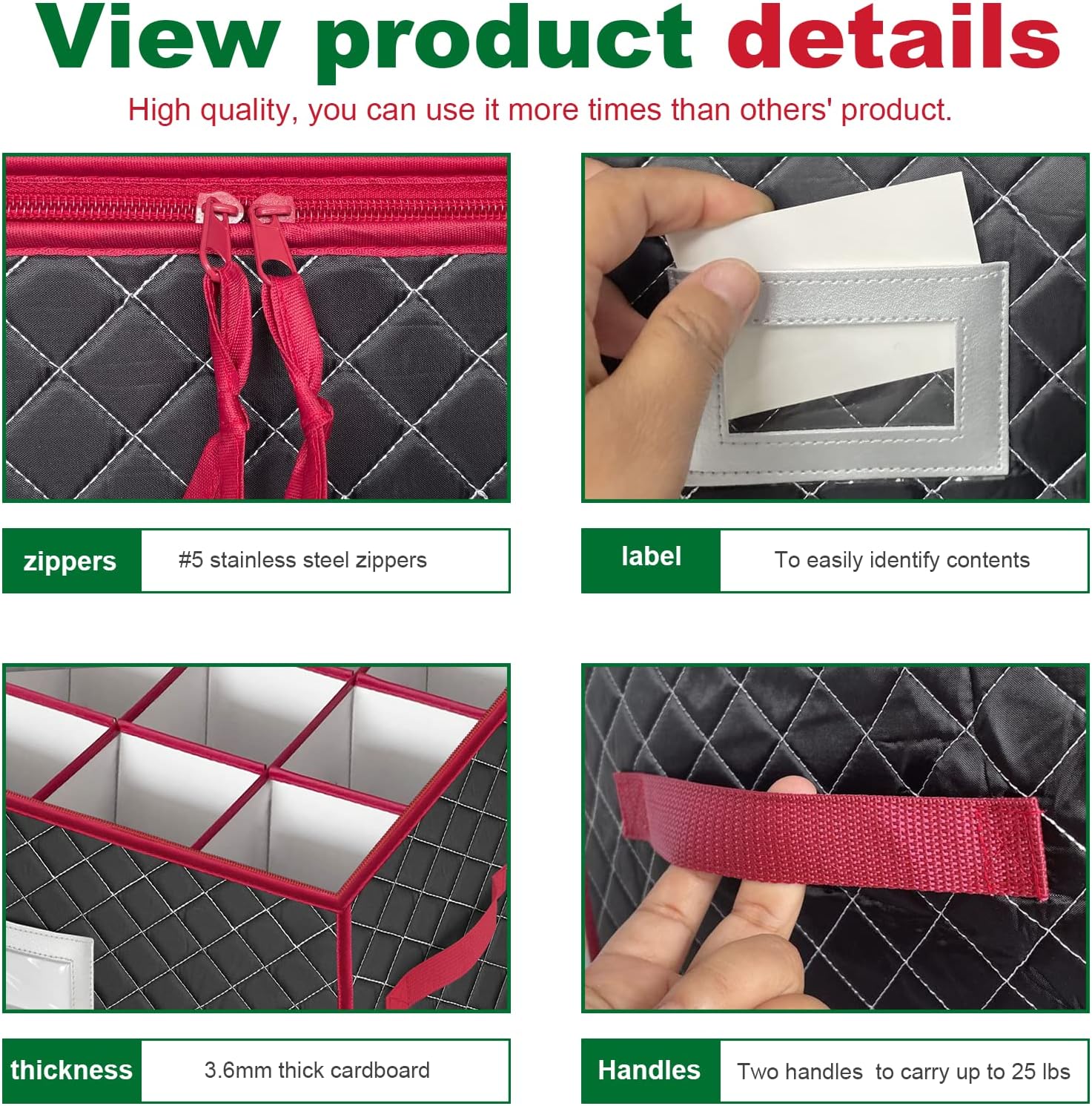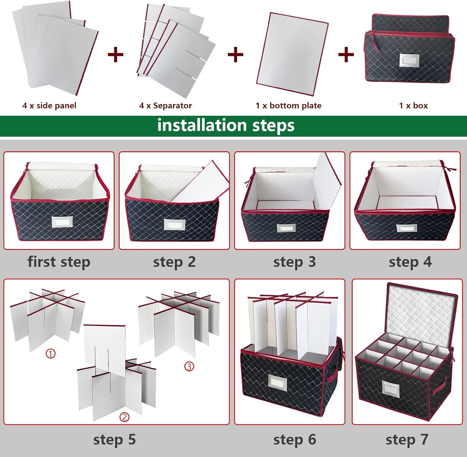 - [LARGE CAPACITY] Christmas stemware storage cases with lids can holds 24 of your favorite wine glasses or stemware up to 9.8 inch height.Each size:15.5" x 12.5"x 9.8".