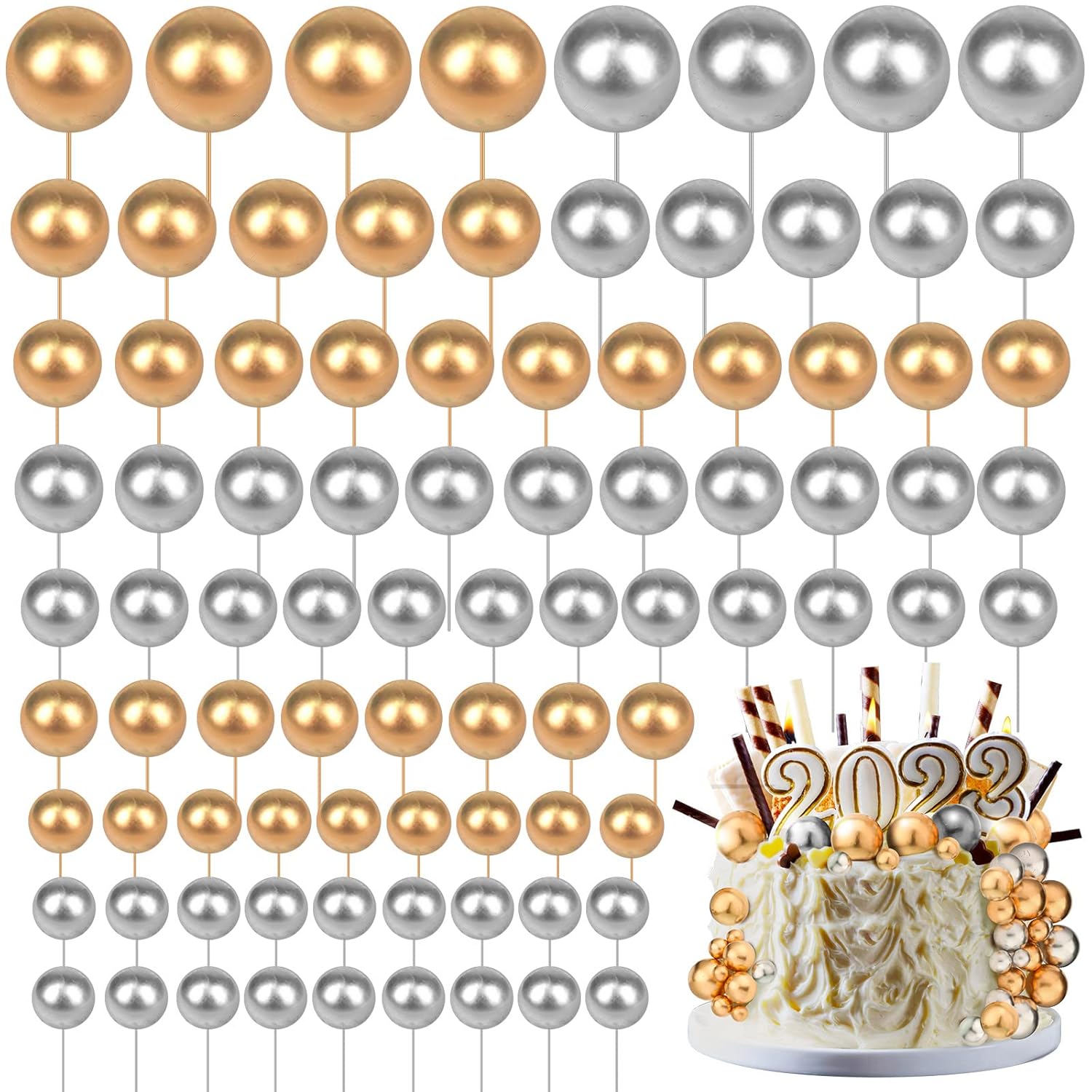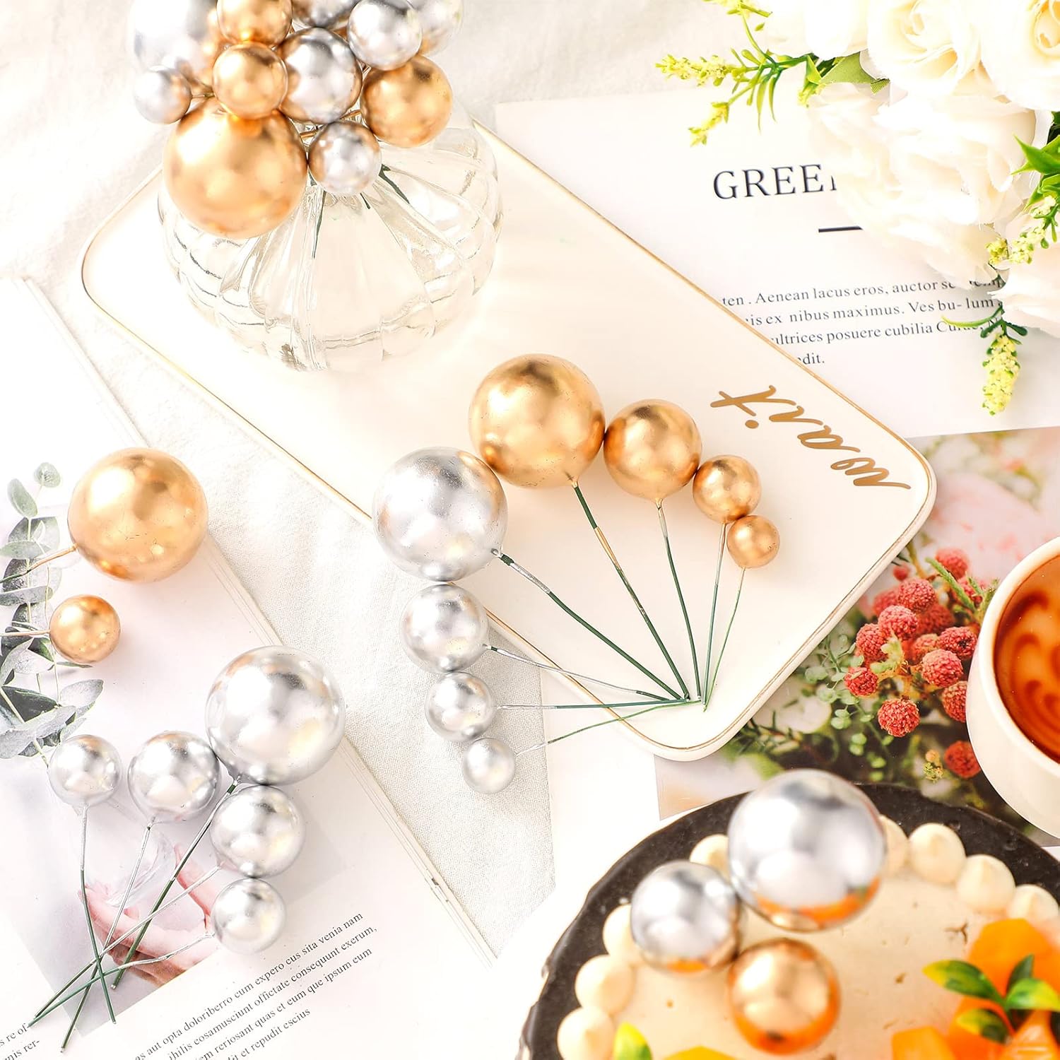 108 Pcs Balls Cake Topper DIY Cupcake Insert Foam Balloons for Cake Baking Wedding Anniversary Birthday Decoration(Gold, Silver,Multi Sizes)