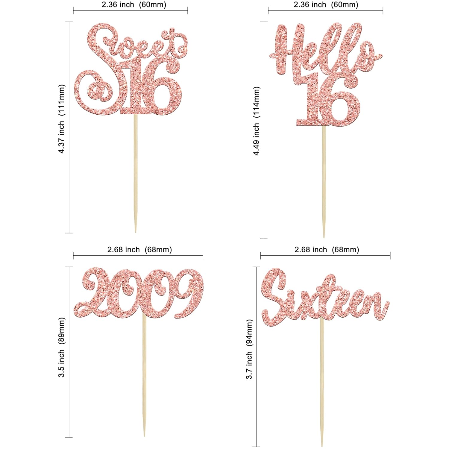 - ๐๐Premium Material: These 16th Birthday Cupcake Toppers are made of high quality 300 gram card stock and food-grade toothpick, very safe to put them on cakes, cupcakes, ice cream, fruits, pie, dessert, cheese or any dish and food appetizer you want to decorate fruit theme party decorations.