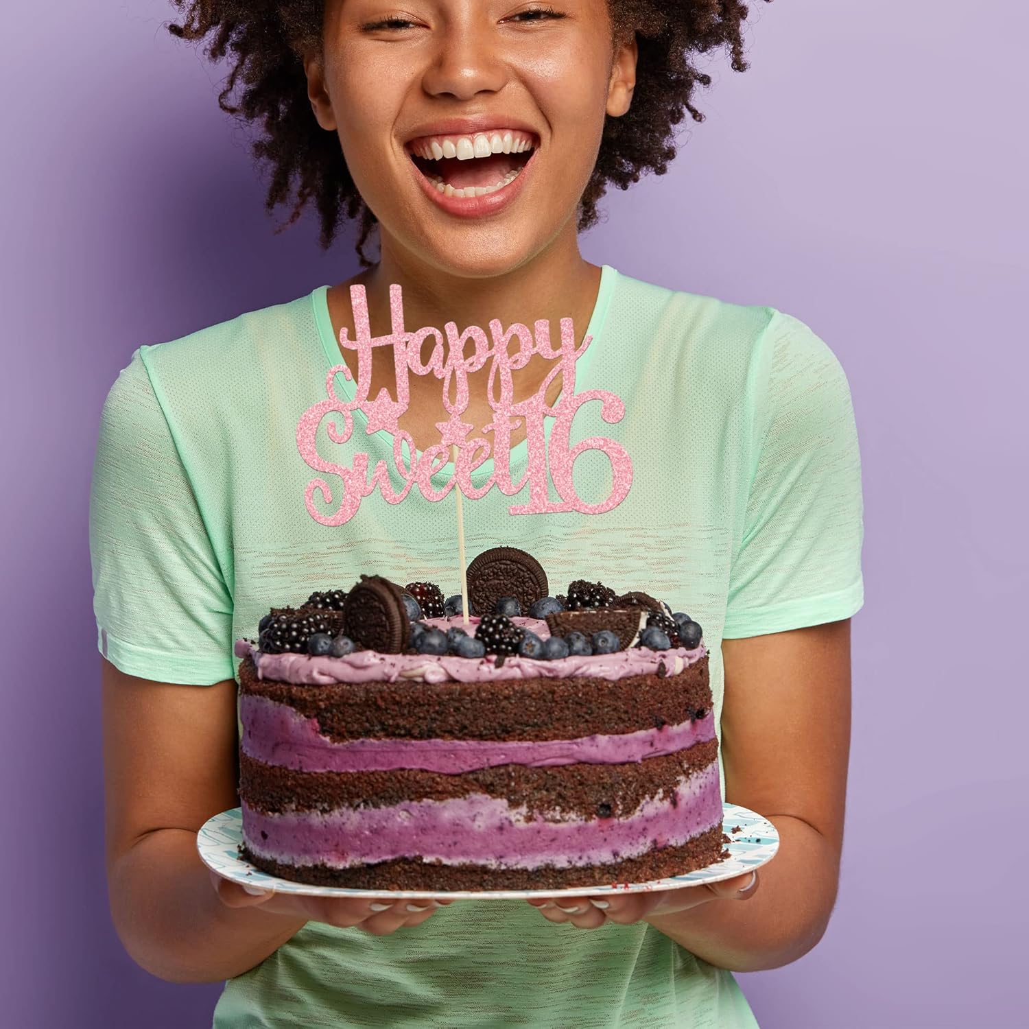 - ๐๐Package included: 1Pcs Happy Sweet 16 Cake Topper. Comes with assembled, so you can insert into your cake directly, which make your cake more interesting.