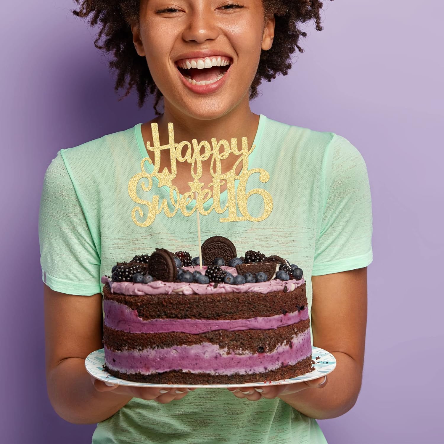 - ๐๐Premium Material: This Happy Sweet 16 Cake Topper is made of high quality 300 gram card stock and food-grade toothpick, very safe to put them on cakes, cupcakes, ice cream, fruits, pie, dessert, cheese or any dish and food appetizer you want to decorate fruit theme party decorations.