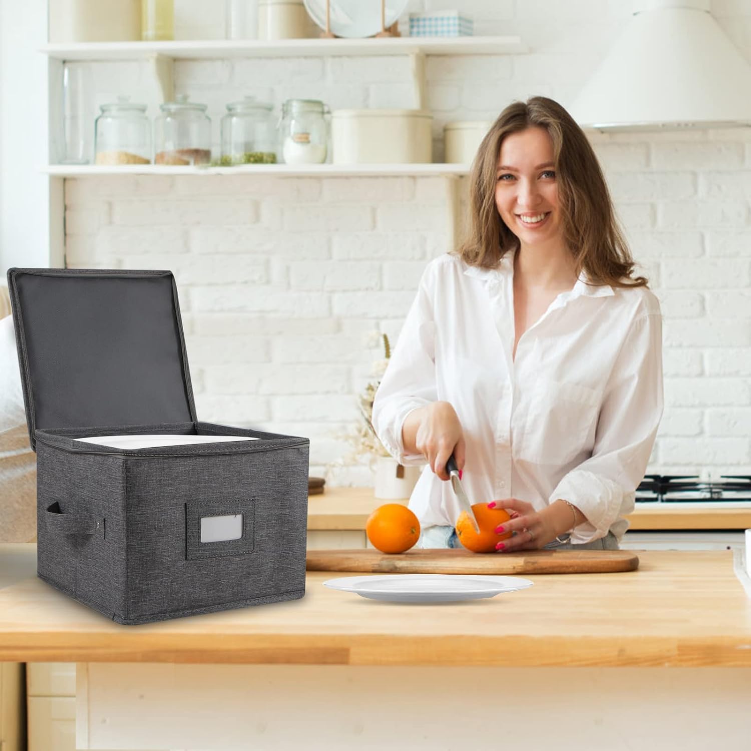 - PREMIUM DURABLE MATERIAL - The china storage containers is made of premium 300D oxford fabric and sturdy thick cardboard, each dish storage containers holds 12 plates, each includes 12 felt plate separators for protection against chipping and scratching